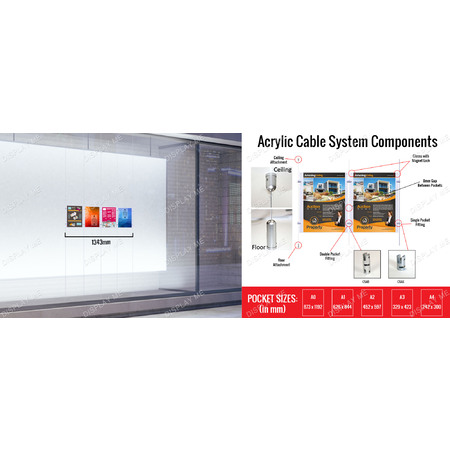 The Acrylic Cable Display also known as wire display or display cable system uses single and double pocket fittings depending on which system you choose. The pocket fittings are made of aluminium giving it a sating finish for a elegant look.