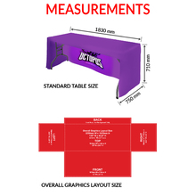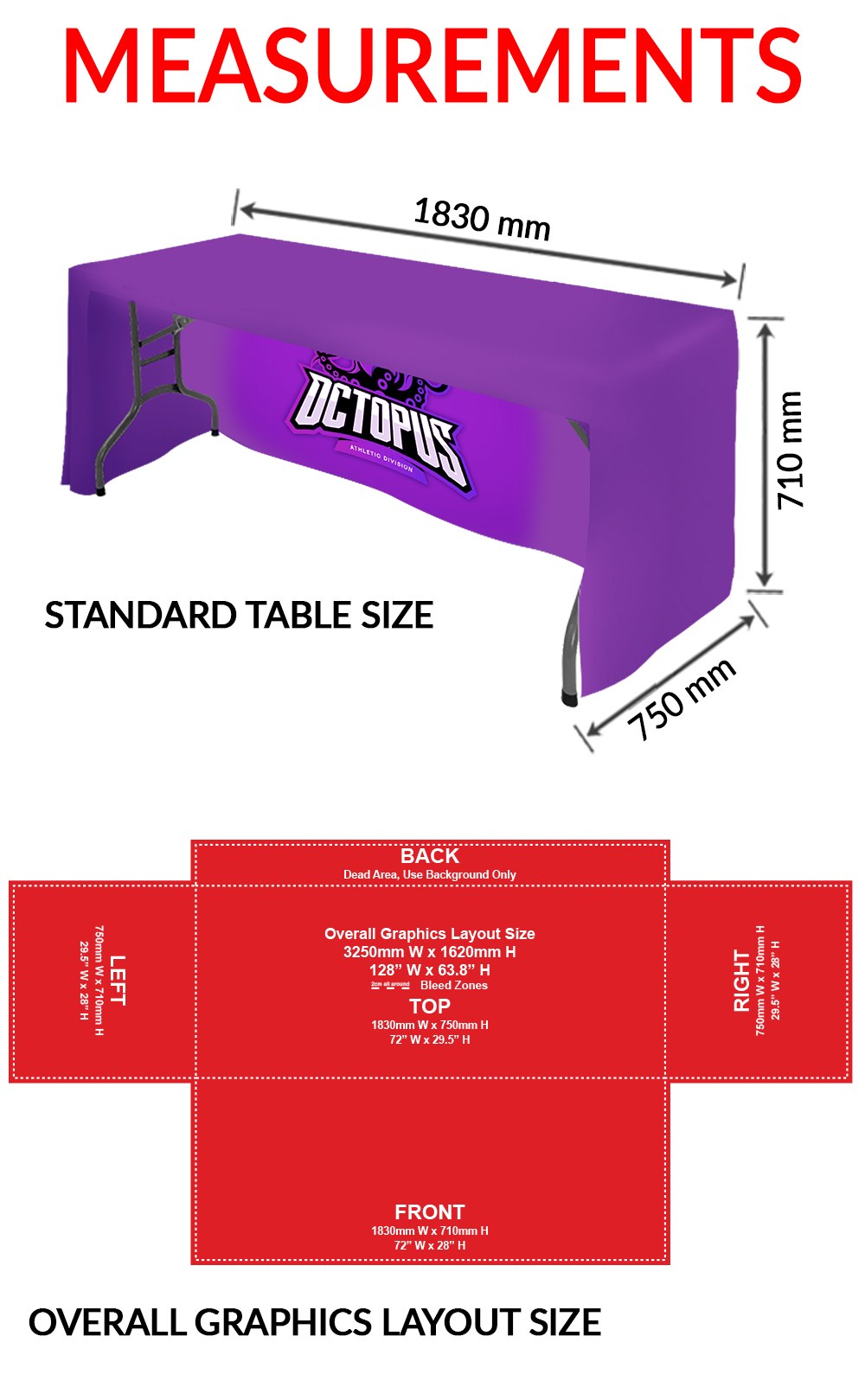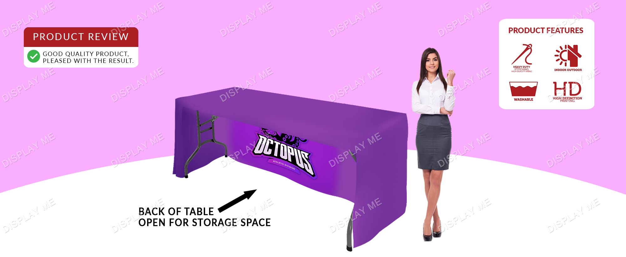 These Rectangular Fitted Table Cloths, also known as fitted table covers and the perfect accessory for any special event or trade show transforming a simple table to a eye catching full colour high resolution graphic print. These branded table covers are wrinkle free in appearance stretching over the table giving a sleek professional look. The table throws are perfect for trade shows, expos, shopping centres and schools open days displaying your company logo, brand, product or marketing campaign.