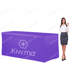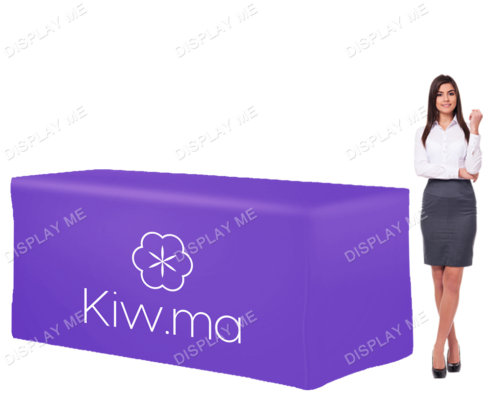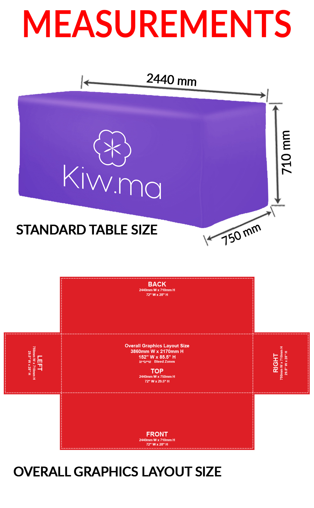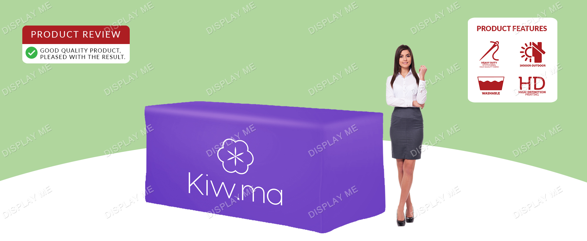 These Rectangular Fitted Table Cloths, also known as fitted table covers and the perfect accessory for any special event or trade show transforming a simple table to a eye catching full colour high resolution graphic print. These branded table covers are wrinkle free in appearance stretching over the table giving a sleek professional look covering all 4 sides of the table. The table throws are perfect for trade shows, expos, shopping centres and schools open days displaying your company logo, brand, product or marketing campaign.