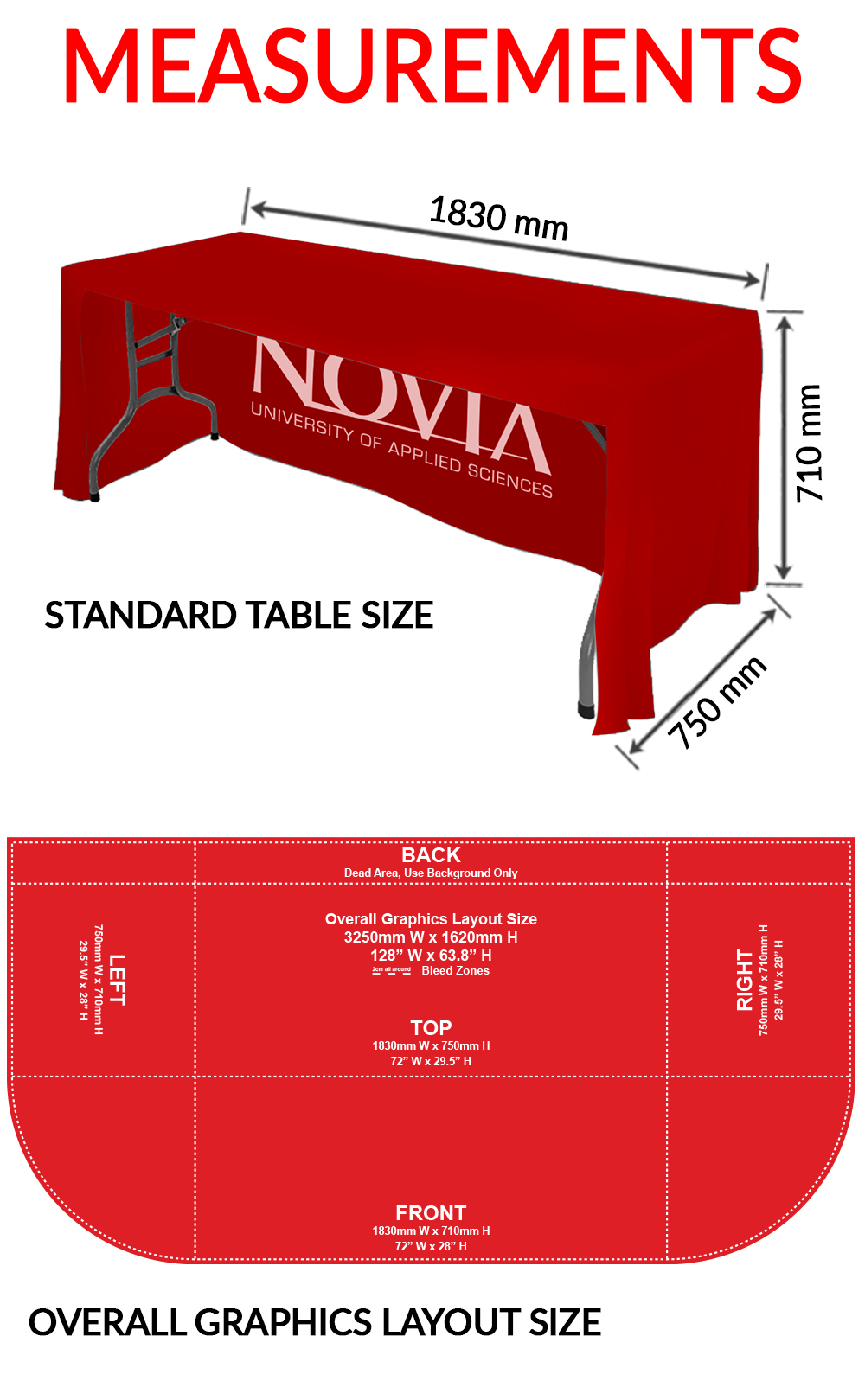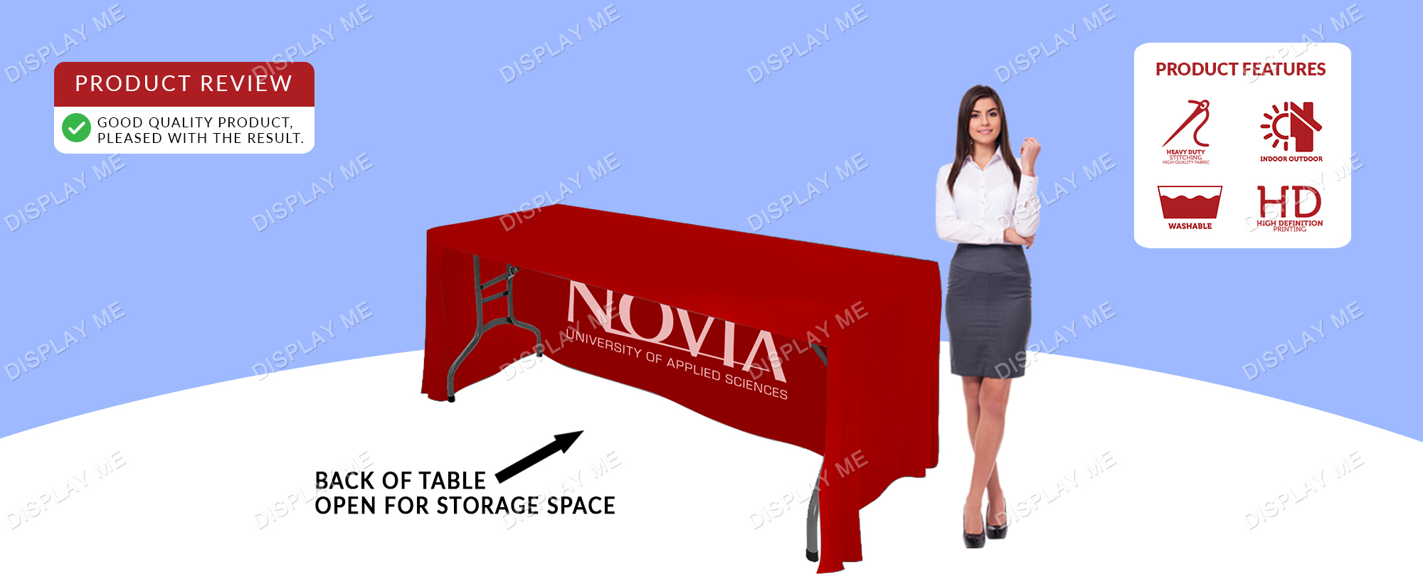 These Rectangular Loose Table Cloths, also known as loose table covers and the perfect accessory for any special event or trade show transforming a simple table to a eye catching full colour high resolution graphic print. These branded table covers are wrinkle free in appearance stretching over the table giving a sleek professional look. The table throws are perfect for trade shows, expos, shopping centres and schools open days displaying your company logo, brand, product or marketing campaign.