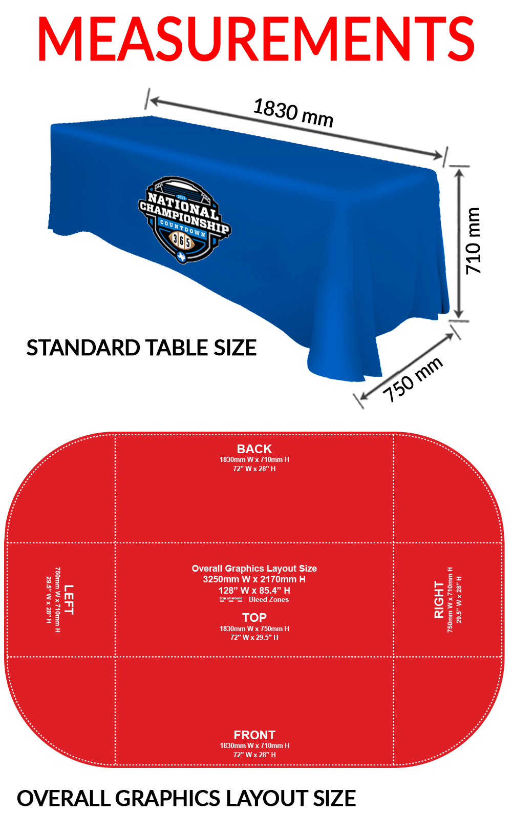 These Rectangular Loose Table Cloths, also known as loose table covers and the perfect accessory for any special event or trade show transforming a simple table to a eye catching full colour high resolution graphic print. These branded table covers are wrinkle free in appearance stretching over the table giving a sleek professional look. The table throws are perfect for trade shows, expos, shopping centres and schools open days displaying your company logo, brand, product or marketing campaign.