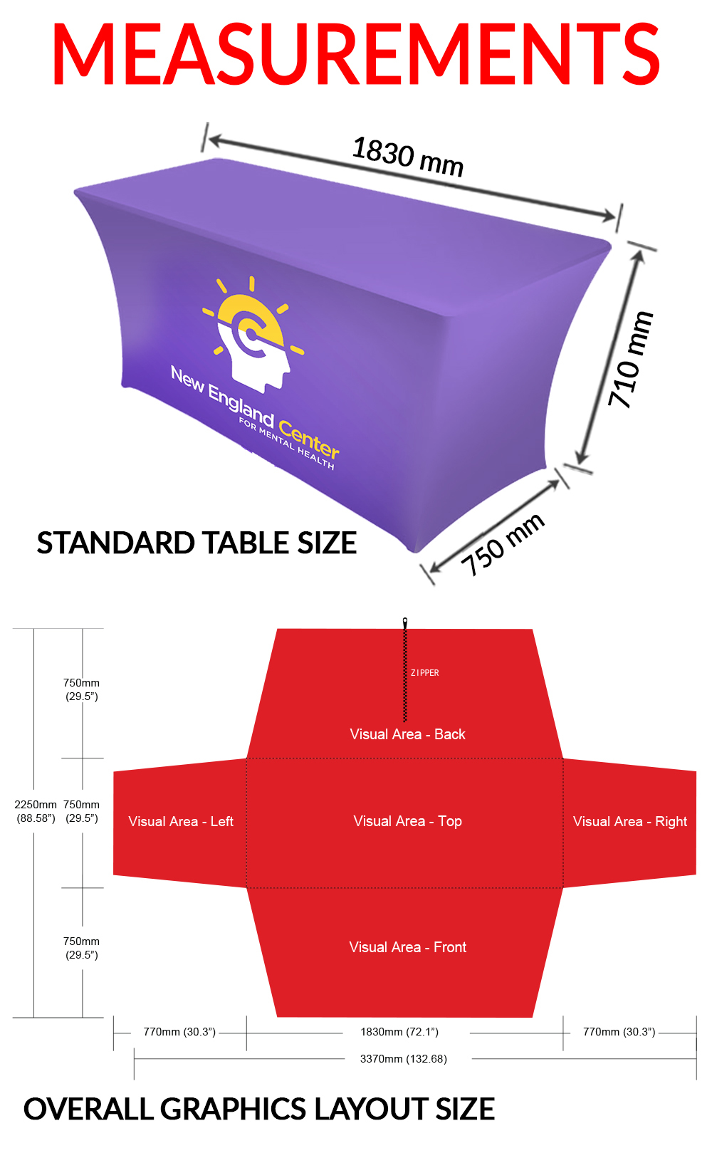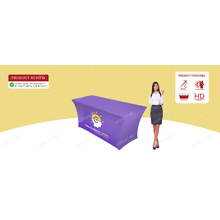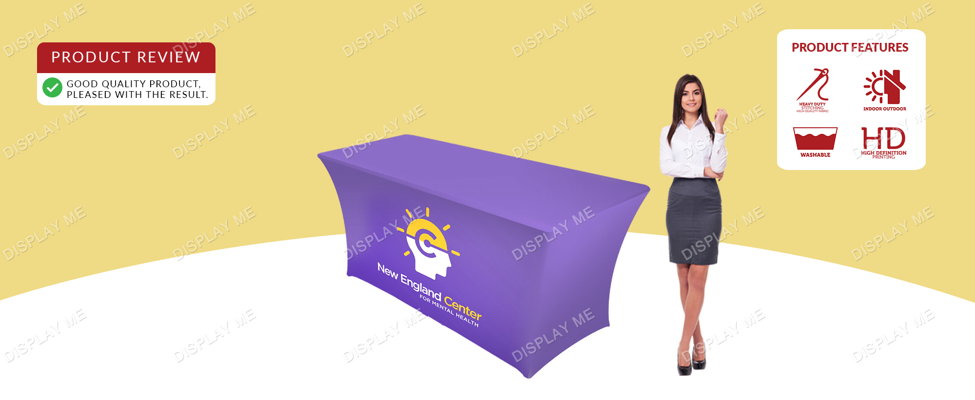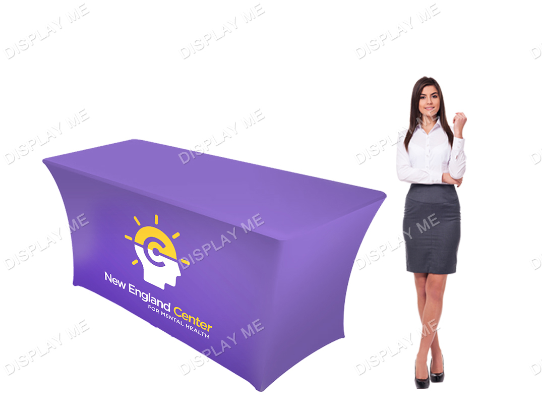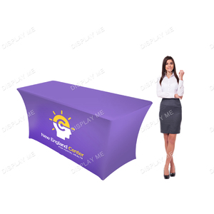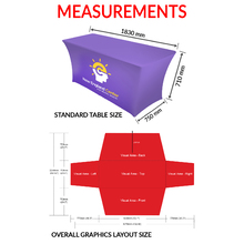 These Rectangular stretch Table Cloths, also known as stretch table covers and the perfect accessory for any special event or trade show transforming a simple table to a eye catching full colour high resolution graphic print. These branded table covers are wrinkle free in appearance stretching over the table giving a sleek professional look. The table throws are perfect for trade shows, expos, shopping centres and schools open days displaying your company logo, brand, product or marketing campaign.