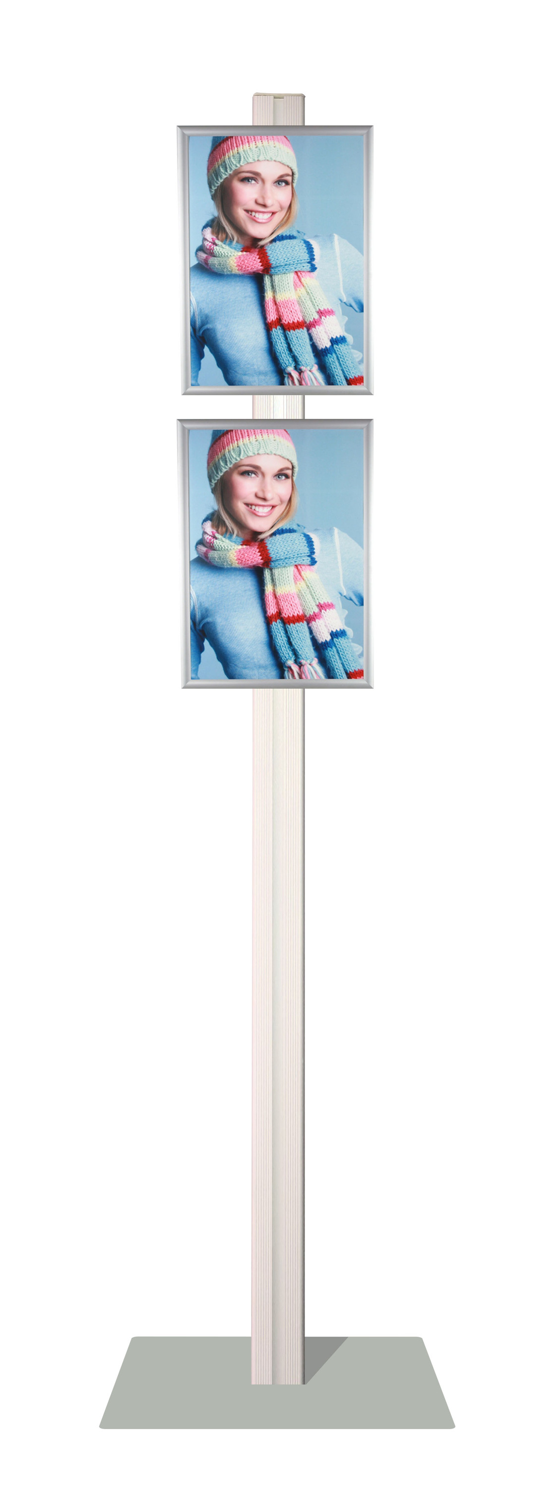 These Portable Freestanding Poster Stands are placed on a Silver anodized 1450mm aluminium pole. These poles are a modular system and can be used to display a number of things. The Pole clips slide into the channels of the pole which allow the frames to be screwed into and positioned anywhere on the pole.