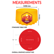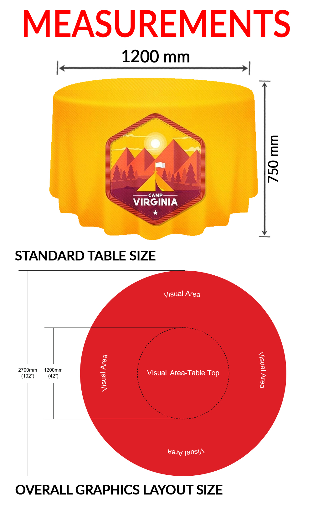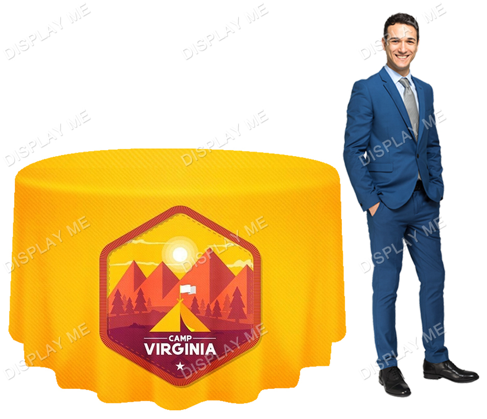 These Round Loose Table Cloths, also known as round table covers and the perfect accessory for any special event or trade show transforming a simple table to a eye catching full colour high resolution graphic print. These branded table covers are wrinkle free in appearance stretching over the table giving a sleek professional look. The table throws are perfect for trade shows, expos, shopping centres and schools open days displaying your company logo, brand, product or marketing campaign.