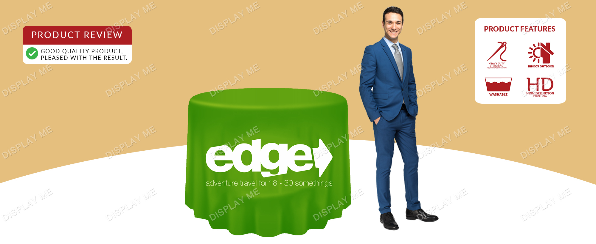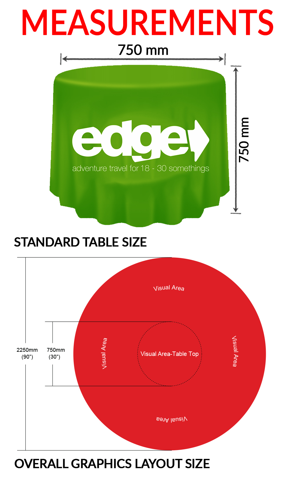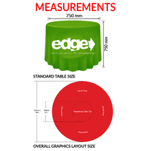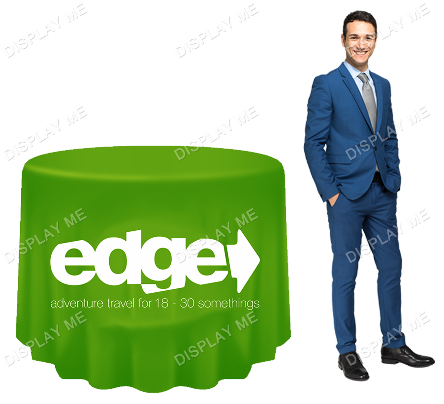 These Round Loose Table Cloths, also known as round table covers and the perfect accessory for any special event or trade show transforming a simple table to a eye catching full colour high resolution graphic print. These branded table covers are wrinkle free in appearance stretching over the table giving a sleek professional look. The table throws are perfect for trade shows, expos, shopping centres and schools open days displaying your company logo, brand, product or marketing campaign.