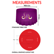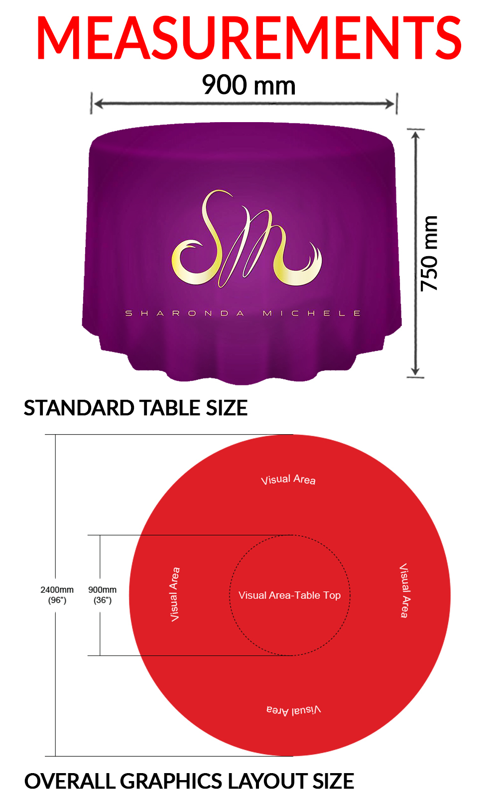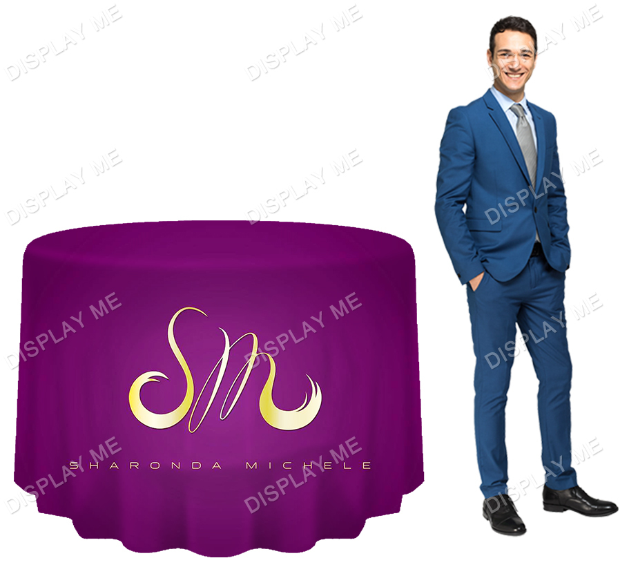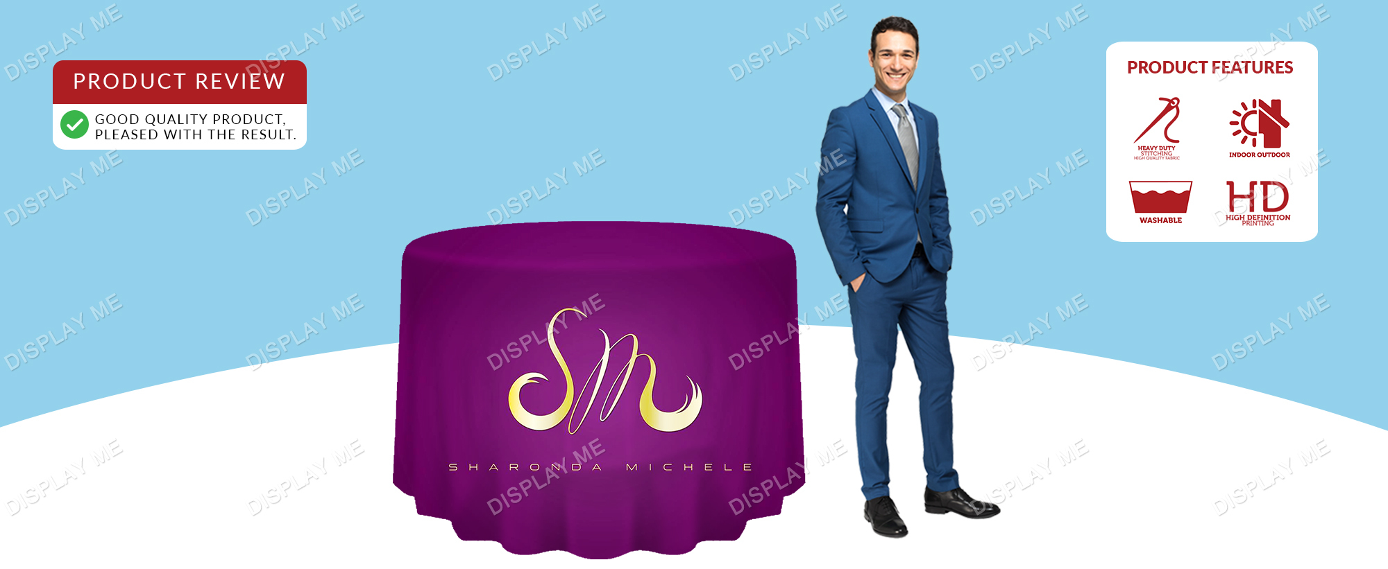 These Round Loose Table Cloths, also known as round table covers and the perfect accessory for any special event or trade show transforming a simple table to a eye catching full colour high resolution graphic print. These branded table covers are wrinkle free in appearance stretching over the table giving a sleek professional look. The table throws are perfect for trade shows, expos, shopping centres and schools open days displaying your company logo, brand, product or marketing campaign.