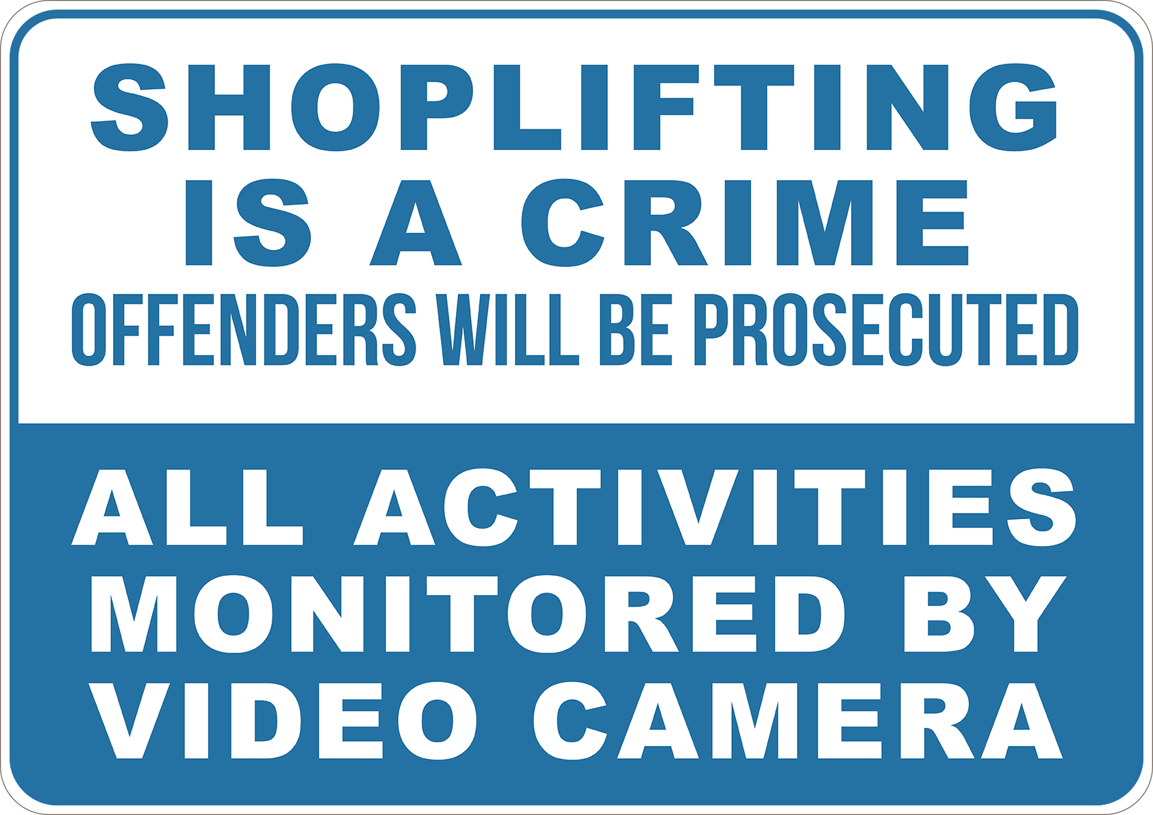 PRINTED ALUMINUM A3 SIGN - Shop Lifting Is A Crime Offenders will be Prosecuted Sign