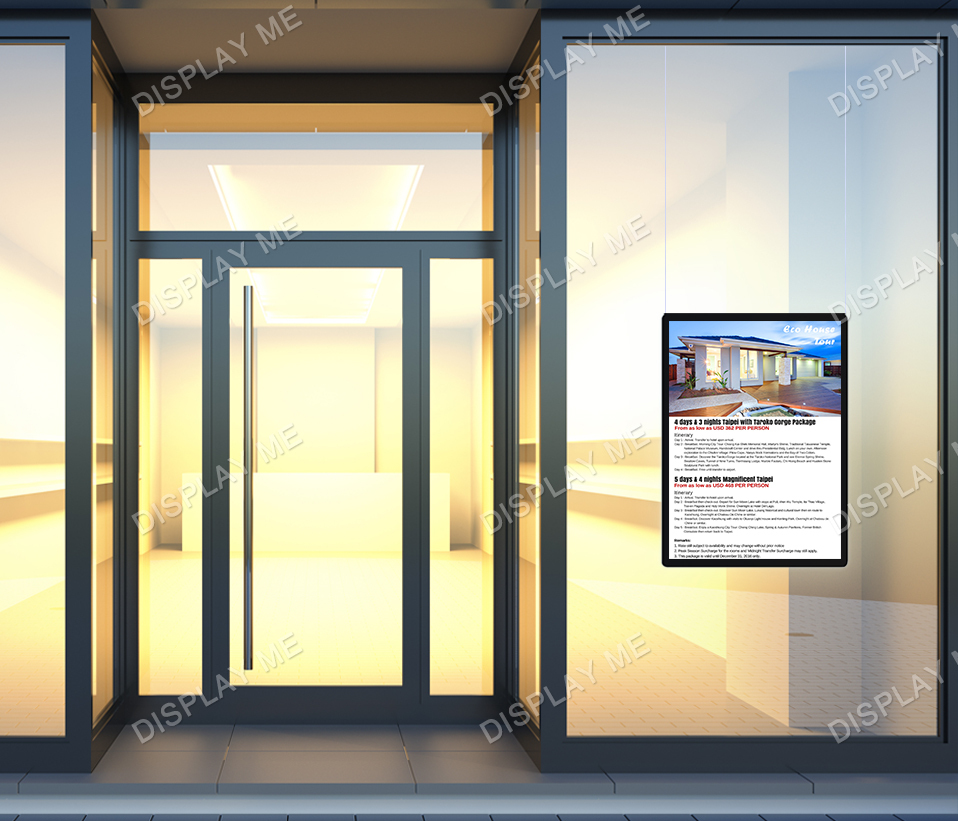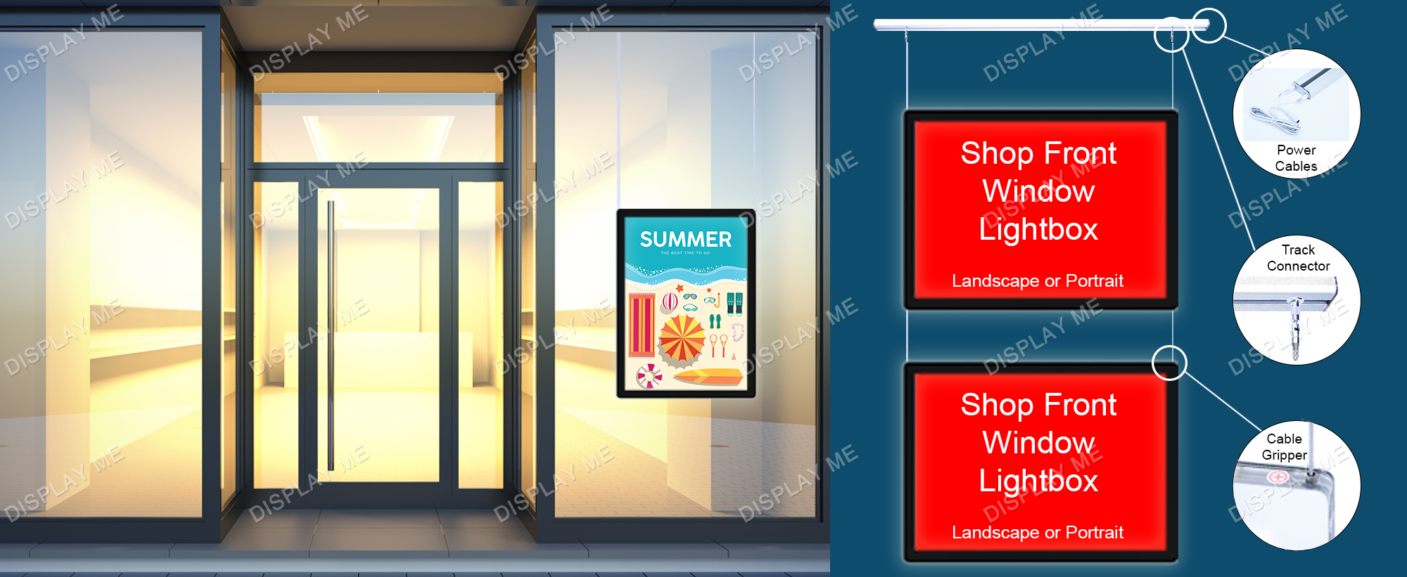 This LED Illuminated Window Light Box Display is ideal for Real Estate Windows, Corporate Offices, Clubs and Brand Promotions. These LED Illuminated Cable Light boxes can be displayed on both sides and give your promotions the attention they need. Each displayed poster is individually covered with a acrylic frame and illuminated by LED giving it a modern elegant look that attracts attention. The posters can be easily changed by using the finger hole and lifting the cover.