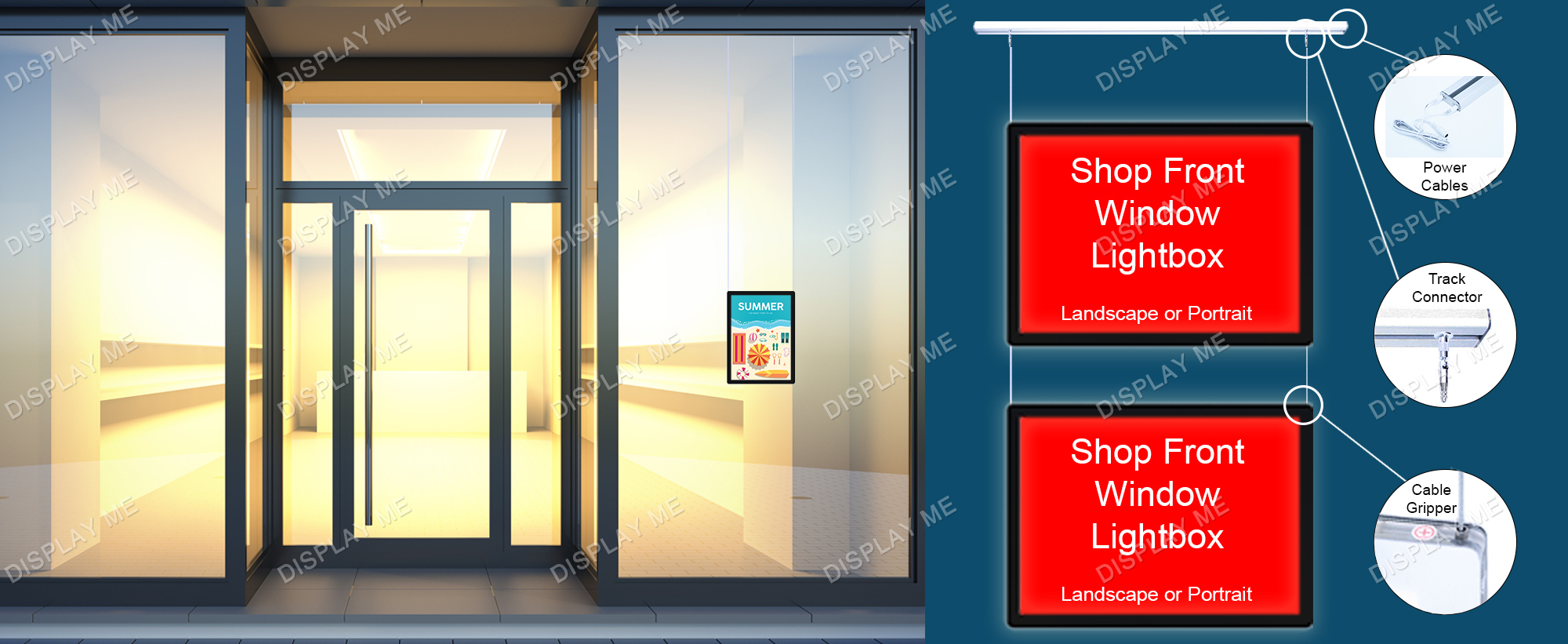This LED Illuminated Window Light Box Display is ideal for Real Estate Windows, Corporate Offices, Clubs and Brand Promotions. These LED Illuminated Cable Light boxes can be displayed on both sides and give your promotions the attention they need. Each displayed poster is individually covered with a acrylic frame and illuminated by LED giving it a modern elegant look that attracts attention. The posters can be easily changed by using the finger hole and lifting the cover.