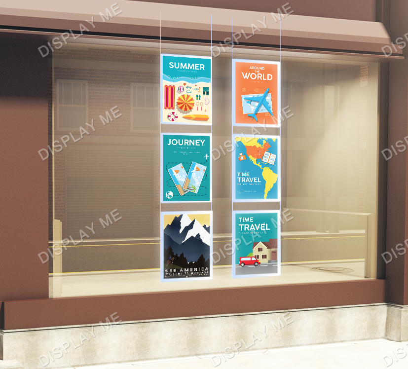 This LED Illuminated Window Light Box Display is ideal for Real Estate Windows, Corporate Offices, Clubs and Brand Promotions. These LED Illuminated Cable Light boxes can be displayed on both sides and give your promotions the attention they need. Each displayed poster is individually covered with a acrylic frame and illuminated by LED giving it a modern elegant look that attracts attention. The posters can be easily changed by using the finger hole and lifting the cover.
