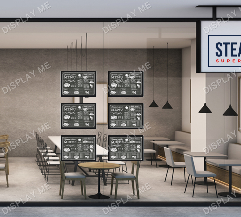 This LED Illuminated Window Light Box Display is ideal for Real Estate Windows, Corporate Offices, Clubs and Brand Promotions. These LED Illuminated Cable Light boxes can be displayed on both sides and give your promotions the attention they need. Each displayed poster is individually covered with a acrylic frame and illuminated by LED giving it a modern elegant look that attracts attention. The posters can be easily changed by using the finger hole and lifting the cover.