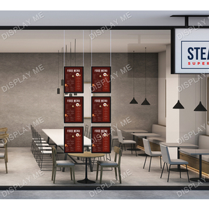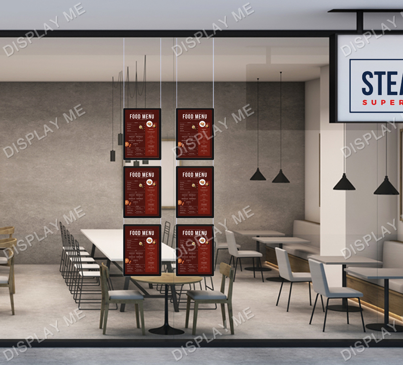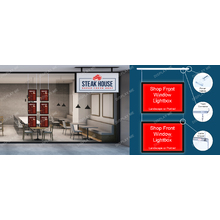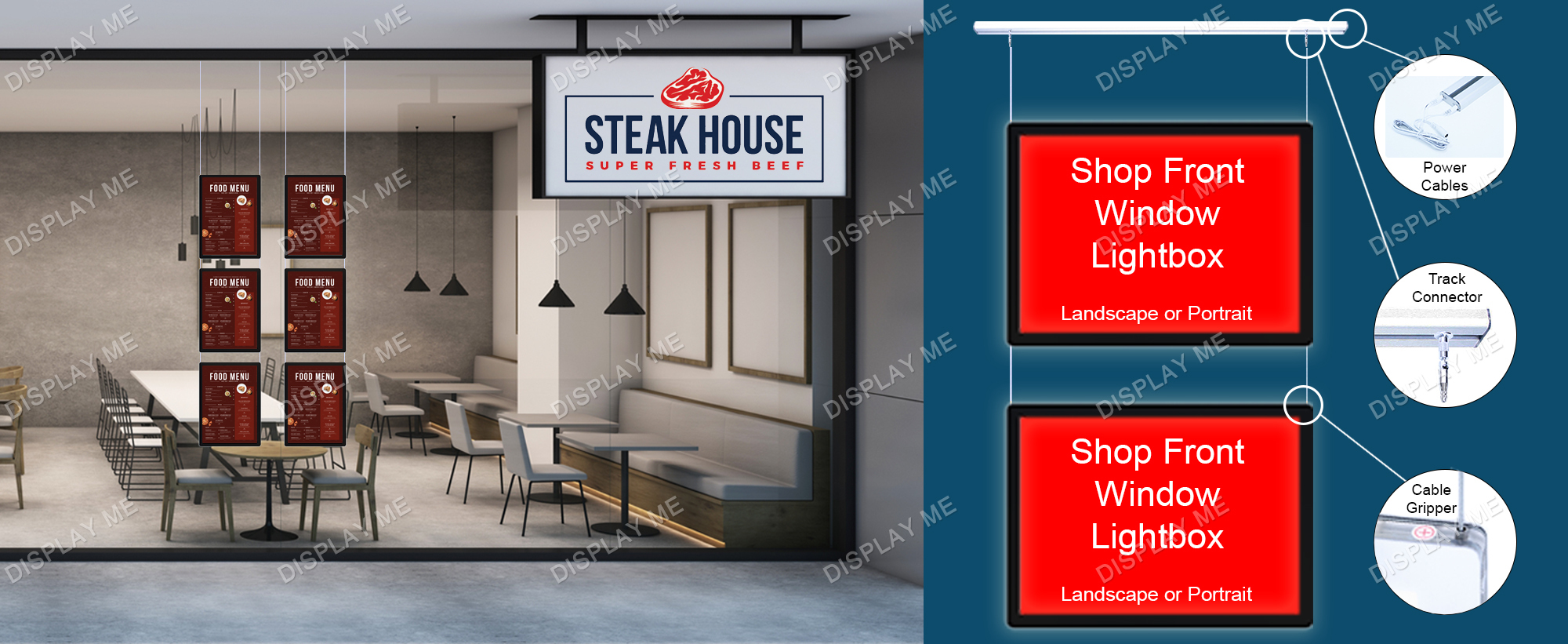 This LED Illuminated Window Light Box Display is ideal for Real Estate Windows, Corporate Offices, Clubs and Brand Promotions. These LED Illuminated Cable Light boxes can be displayed on both sides and give your promotions the attention they need. Each displayed poster is individually covered with a acrylic frame and illuminated by LED giving it a modern elegant look that attracts attention. The posters can be easily changed by using the finger hole and lifting the cover.