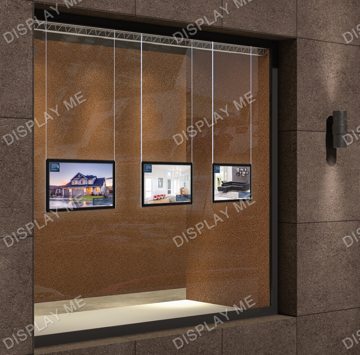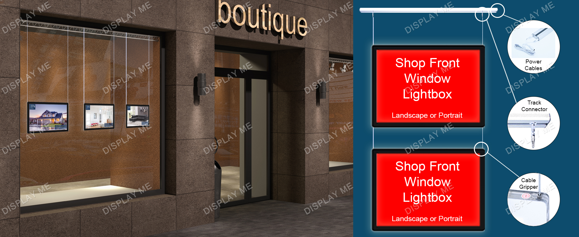 This LED Illuminated Window Light Box Display is ideal for Real Estate Windows, Corporate Offices, Clubs and Brand Promotions. These LED Illuminated Cable Light boxes can be displayed on both sides and give your promotions the attention they need. Each displayed poster is individually covered with a acrylic frame and illuminated by LED giving it a modern elegant look that attracts attention. The posters can be easily changed by using the finger hole and lifting the cover.