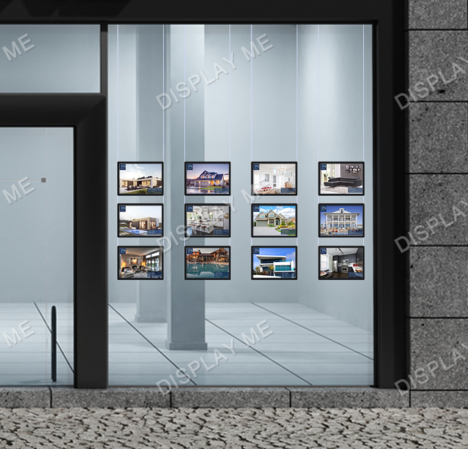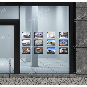 This LED Illuminated Window Light Box Display is ideal for Real Estate Windows, Corporate Offices, Clubs and Brand Promotions. These LED Illuminated Cable Light boxes can be displayed on both sides and give your promotions the attention they need. Each displayed poster is individually covered with a acrylic frame and illuminated by LED giving it a modern elegant look that attracts attention. The posters can be easily changed by using the finger hole and lifting the cover.