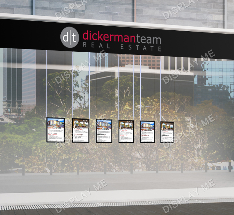 This LED Illuminated Window Light Box Display is ideal for Real Estate Windows, Corporate Offices, Clubs and Brand Promotions. These LED Illuminated Cable Light boxes can be displayed on both sides and give your promotions the attention they need. Each displayed poster is individually covered with a acrylic frame and illuminated by LED giving it a modern elegant look that attracts attention. The posters can be easily changed by using the finger hole and lifting the cover.