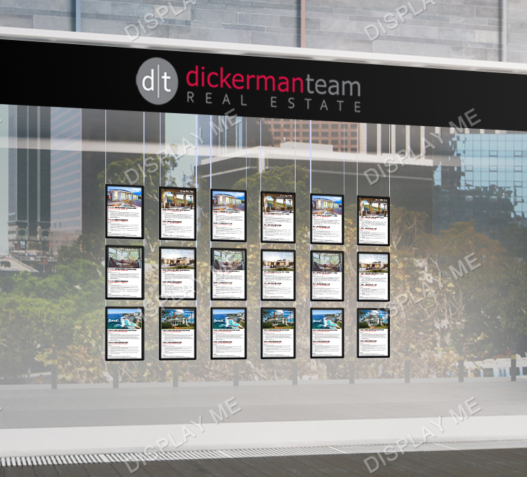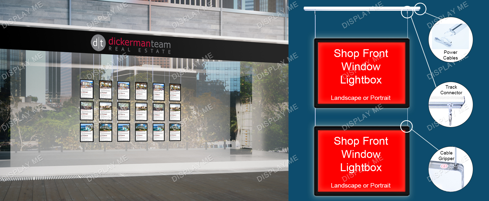 This LED Illuminated Window Light Box Display is ideal for Real Estate Windows, Corporate Offices, Clubs and Brand Promotions. These LED Illuminated Cable Light boxes can be displayed on both sides and give your promotions the attention they need. Each displayed poster is individually covered with a acrylic frame and illuminated by LED giving it a modern elegant look that attracts attention. The posters can be easily changed by using the finger hole and lifting the cover.