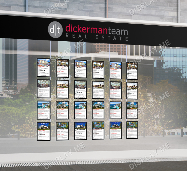 This LED Illuminated Window Light Box Display is ideal for Real Estate Windows, Corporate Offices, Clubs and Brand Promotions. These LED Illuminated Cable Light boxes can be displayed on both sides and give your promotions the attention they need. Each displayed poster is individually covered with a acrylic frame and illuminated by LED giving it a modern elegant look that attracts attention. The posters can be easily changed by using the finger hole and lifting the cover.