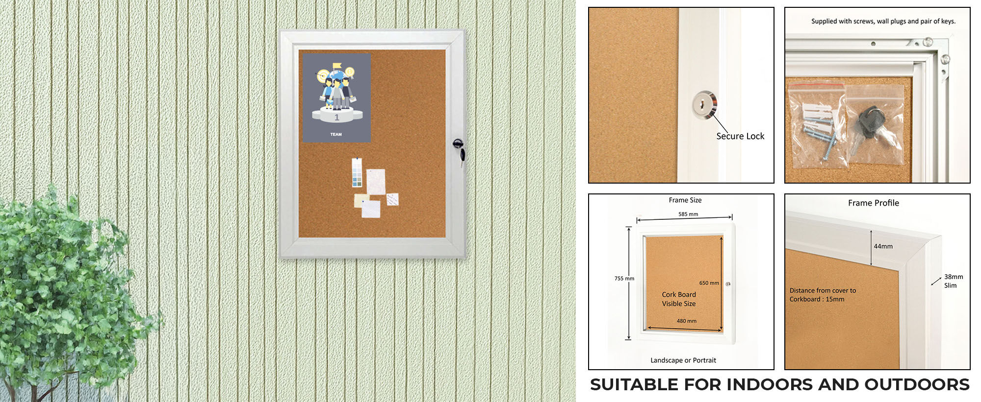 • 1 × 4 A4 Lockable Cork Notice Board