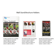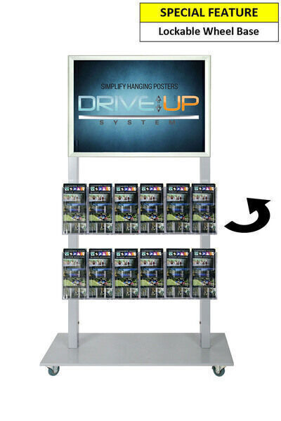In StockThe Mall Stand is a portable display stand. This is a Double Sided Silver freestanding stand with a A2 Poster Display and 12 DL Brochure Holders on each side. It is sturdy and made of Steel and powder Coated in Silver. It is 143cm high which enables you to easily look over it to see beyond the line of sight. The frame is a tamper proof snap frame with a steel backing. The frame remains locked unless bottom, sides then top profiles are opened sequentially. The Acrylic Brochure holders are scratch resistant and have a glass like appearance. The base is a low profile lockable wheel base that has removable wheels. They are ideal for venues and shopping malls to advertise or promote events. They can be used in a variety of indoor or under cover locations for a smart, professional look for your businesses signage and promotions.