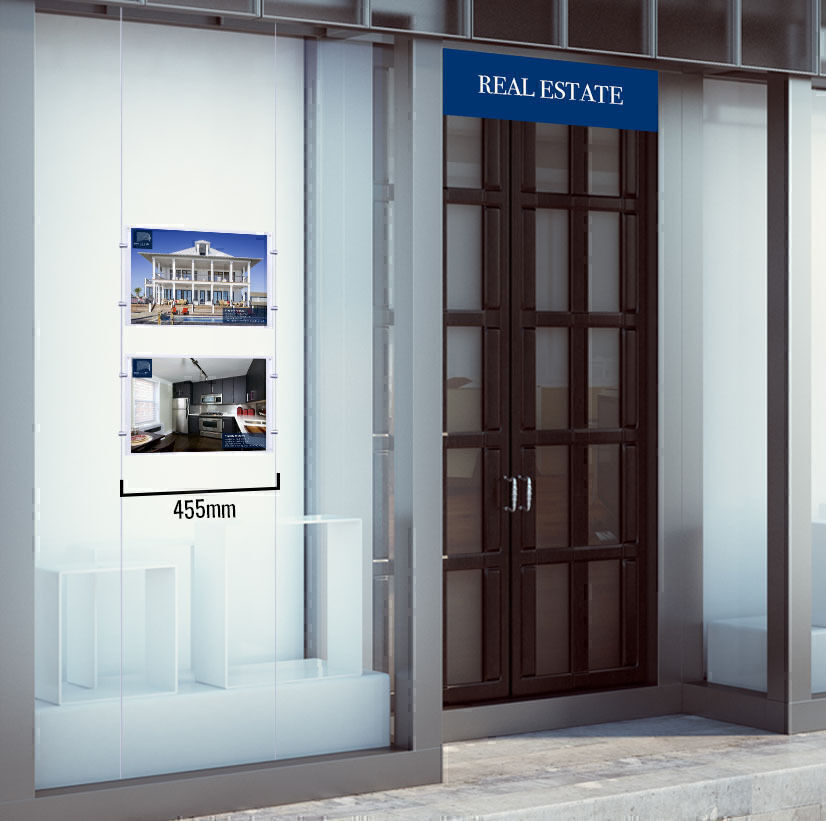 This Window Cable Display, Window Real Estate Displays is a double sided 3mm thick acrylic display attached to a cable system.
