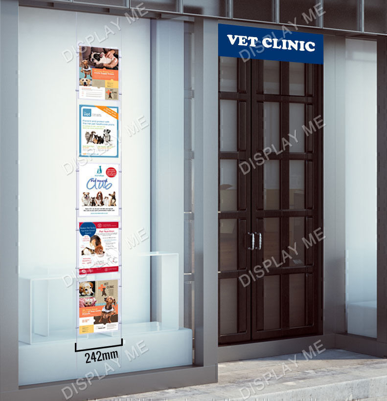 This Window Cable Display, Window Real Estate Displays is a double sided 3mm thick acrylic display attached to a cable system.