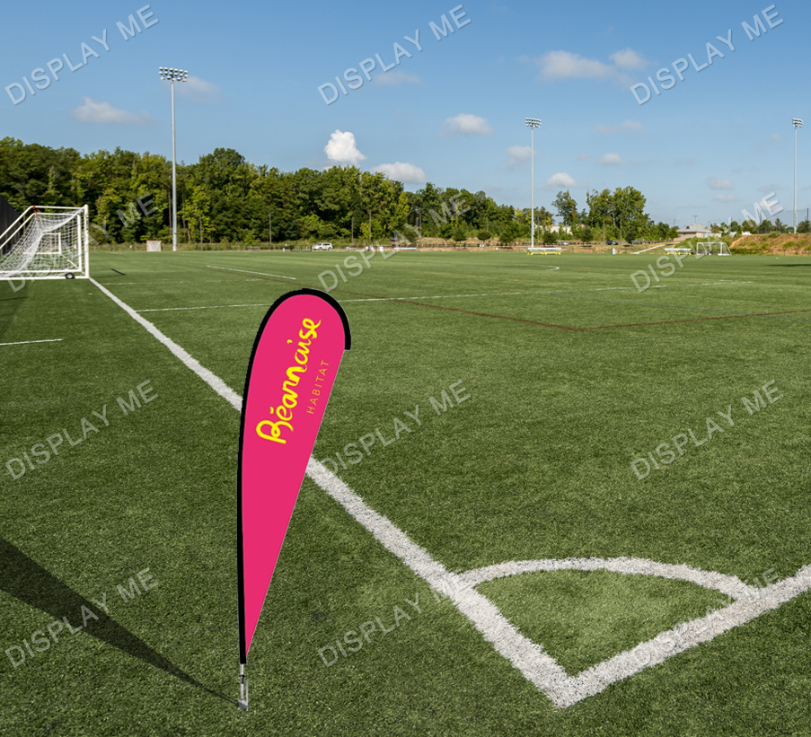 Teardrop Fabric Banner is also called Flying Banner. The Teardrop Fabric Banner comes complete with poles, printed banner, carry bag and a your selected mounting option. This Teardrop Fabric Banner can be produced in both single sided or double sided versions and replacement fabric banners give you the flexibility to change your graphic and message with ease. It is an ideal street banner to be used in moderate winds and weather. Although perfect for outside use, this Teardrop Banner can also be used for an indoor events.