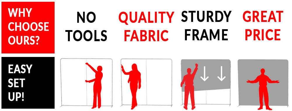 This single sided Fabric Straight Expo Wall is a cost effective, flexible and lightweight option to display your graphic message.