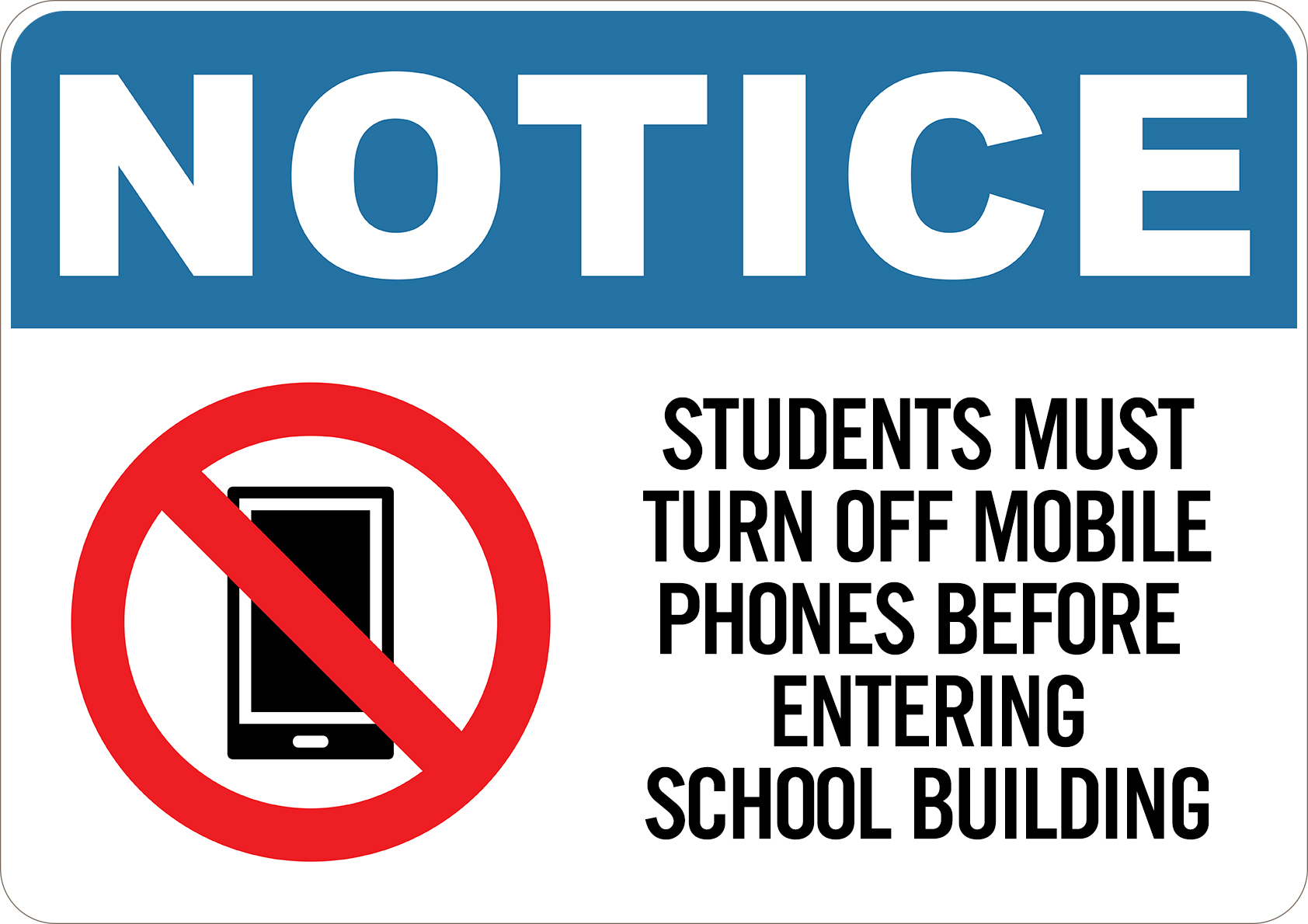 PRINTED ALUMINUM A5 SIGN - Notice Students Must Turn Off Mobile Phones Before Entering School Building Sign