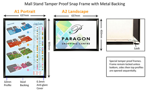 • 1 X Black A1 Steel Tamper Proof Back Snap Frame