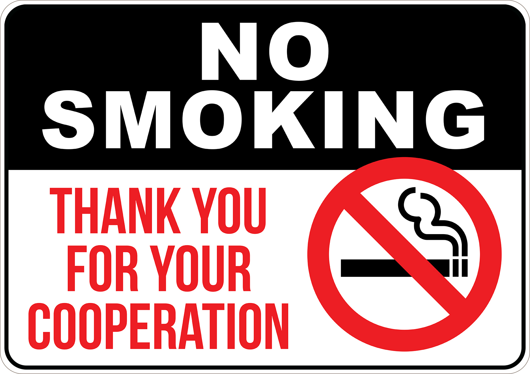 PRINTED ALUMINUM A2 SIGN - Thank You For Your Cooperation Sign