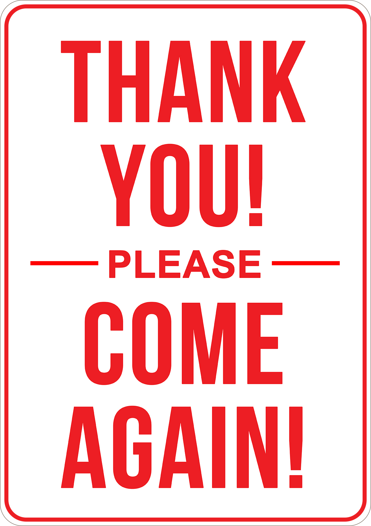PRINTED ALUMINUM A2 SIGN - Thank You Please Come Again Sign