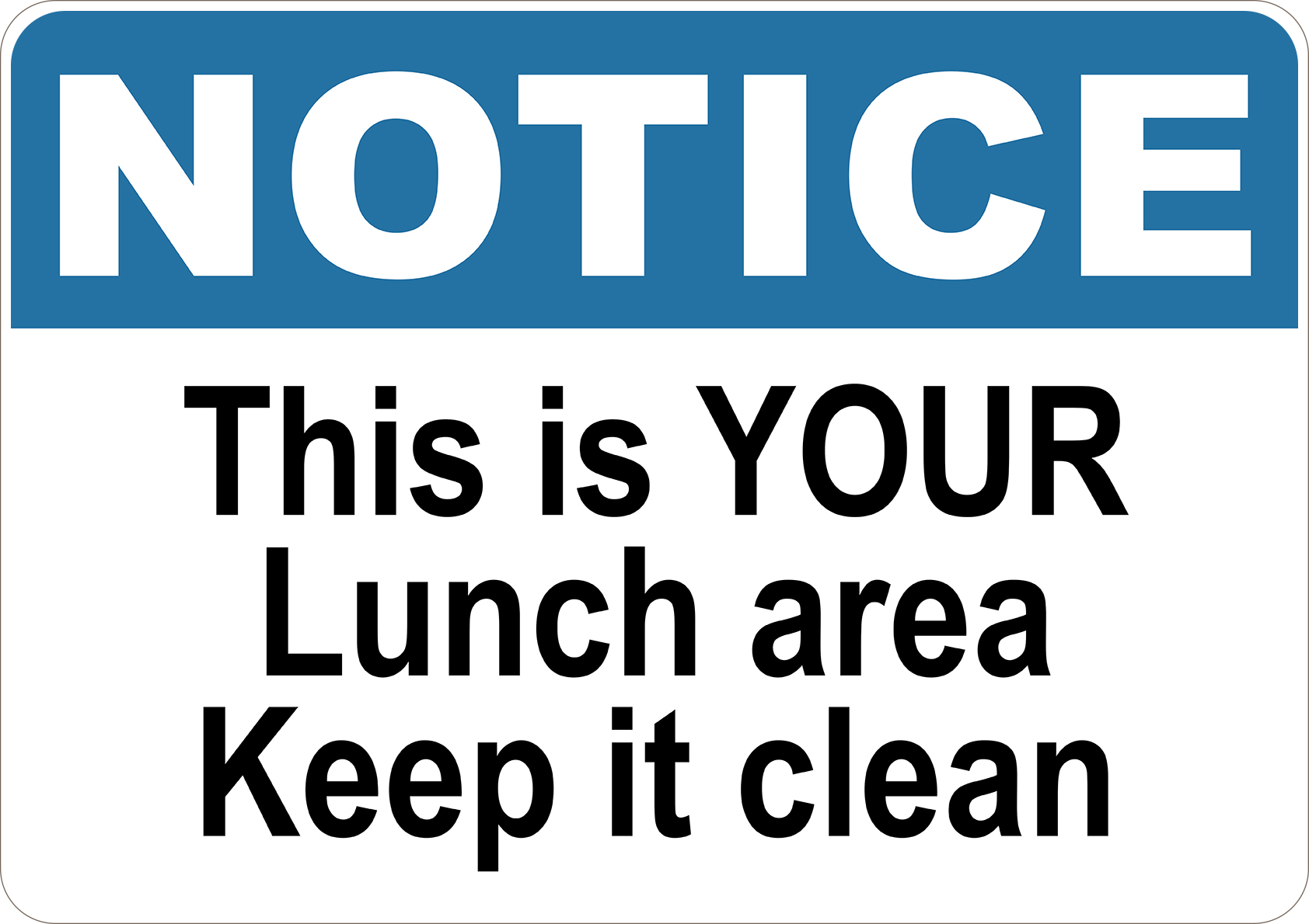 PRINTED ALUMINUM A2 SIGN - This Is Your Lunch Area Keep It Clean Sign