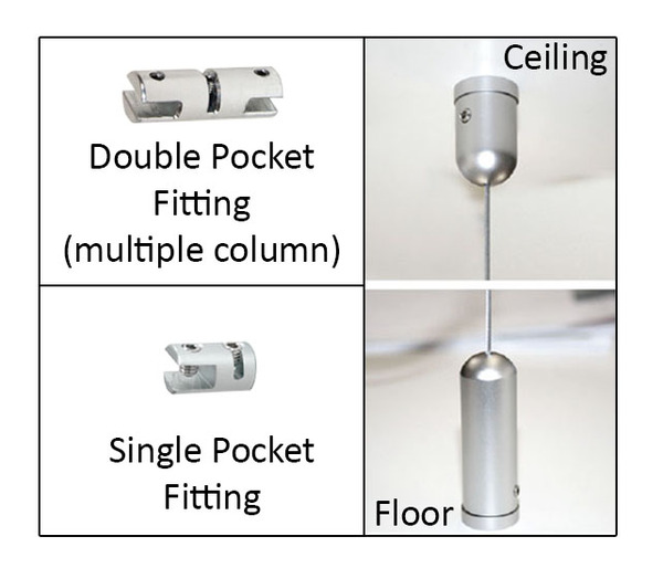 The Acrylic Cable Display also known as wire display or display cable system uses single and double pocket fittings depending on which system you choose. The pocket fittings are made of aluminium giving it a sating finish for a elegant look.