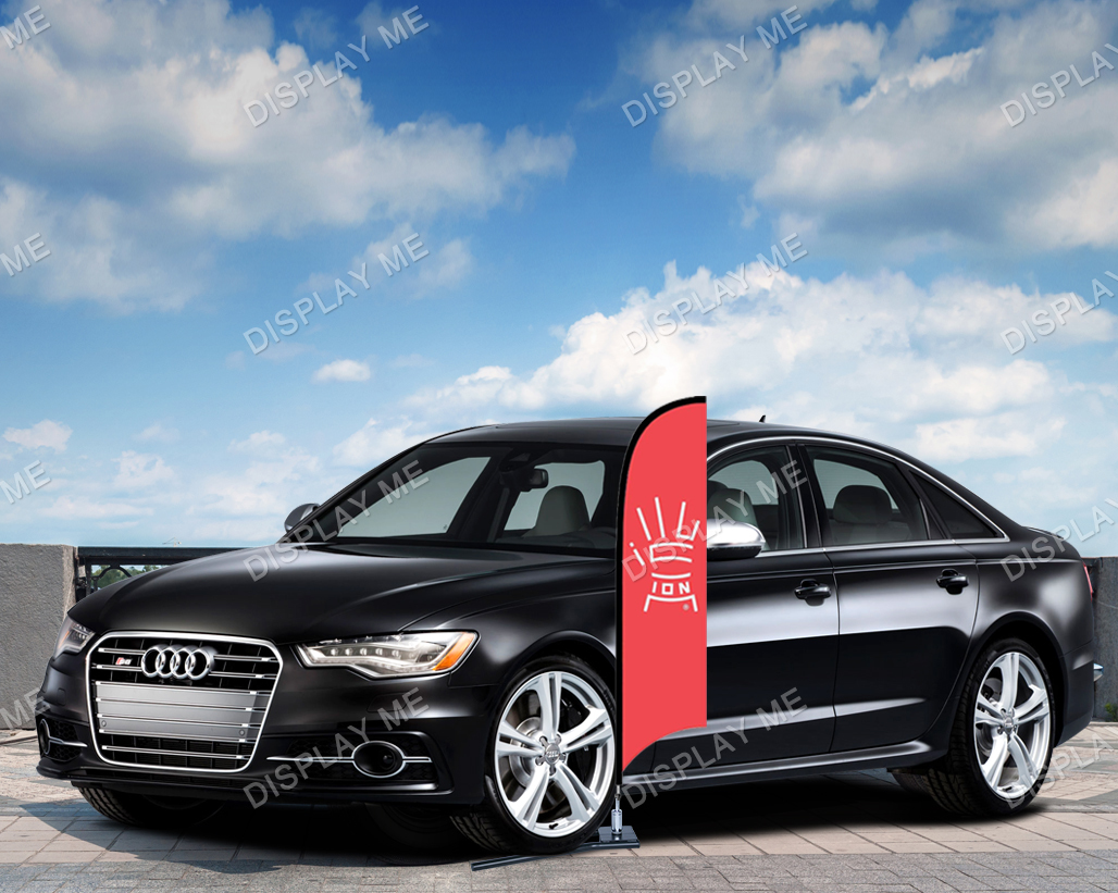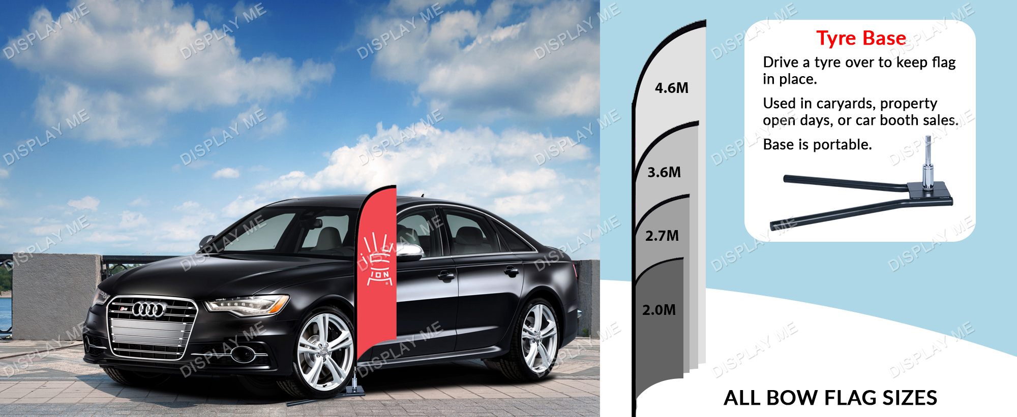 Double Sided 2 Meter Bow Fabric Flag with Under Tyre Base