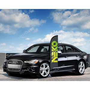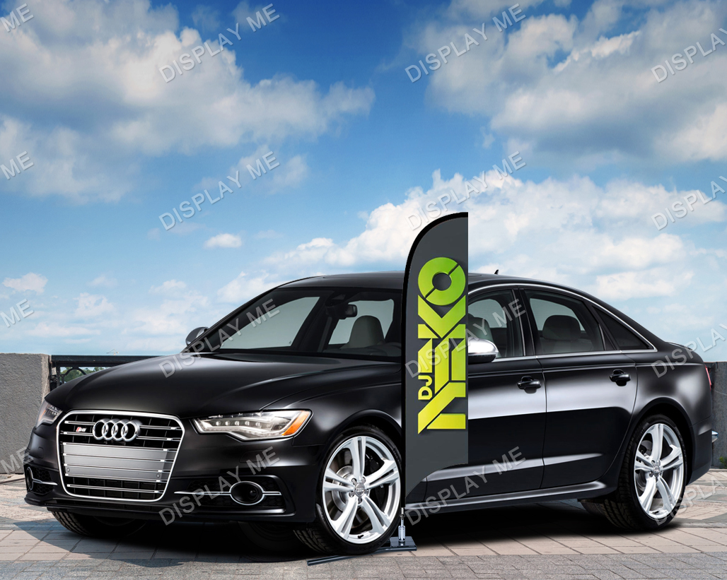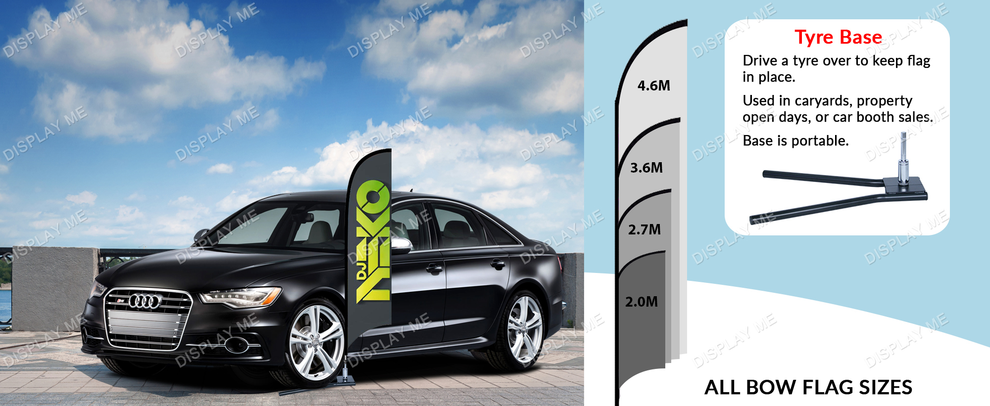 Double Sided 2.7 Meter Bow Fabric Flag with Under Tyre Base