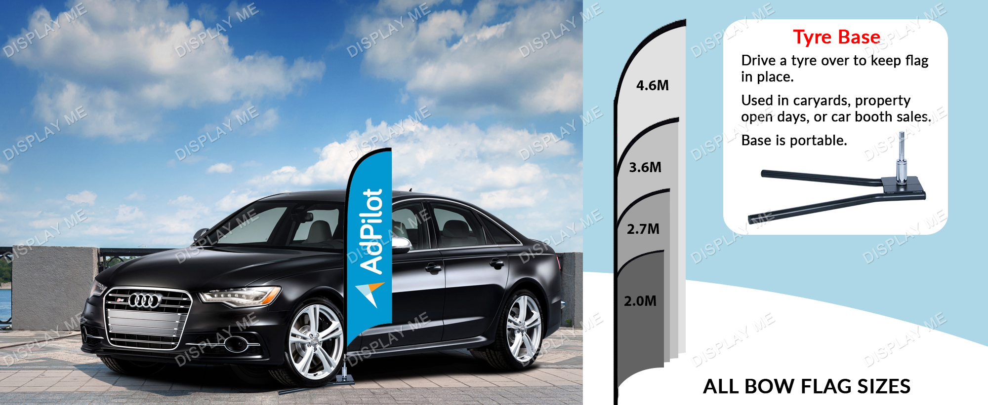 Single Sided 2.7 Meter Bow Fabric Flag with Under Tyre Base