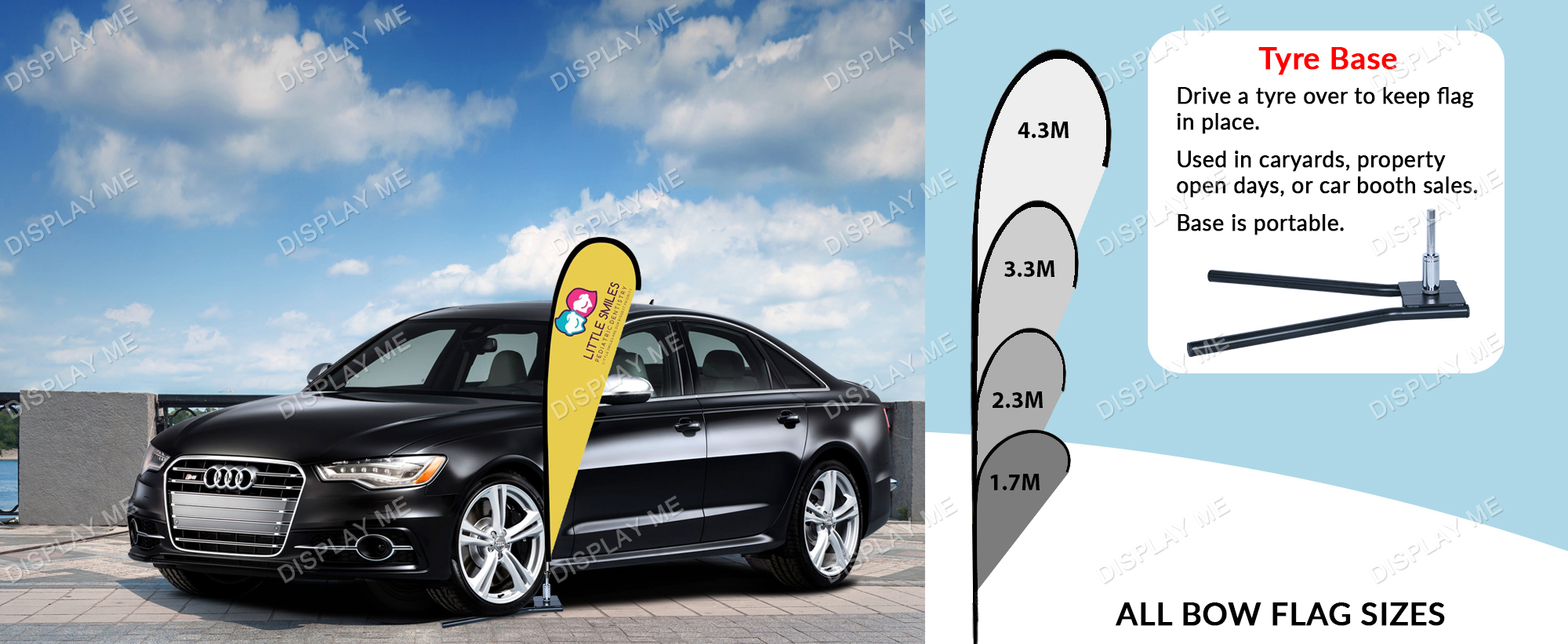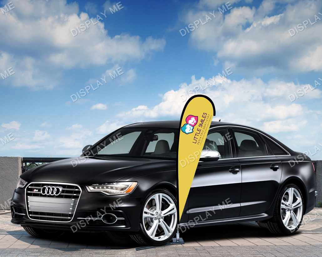Double Sided 2.3 Meter Teardrop Fabric Flag with Under Tyre Base