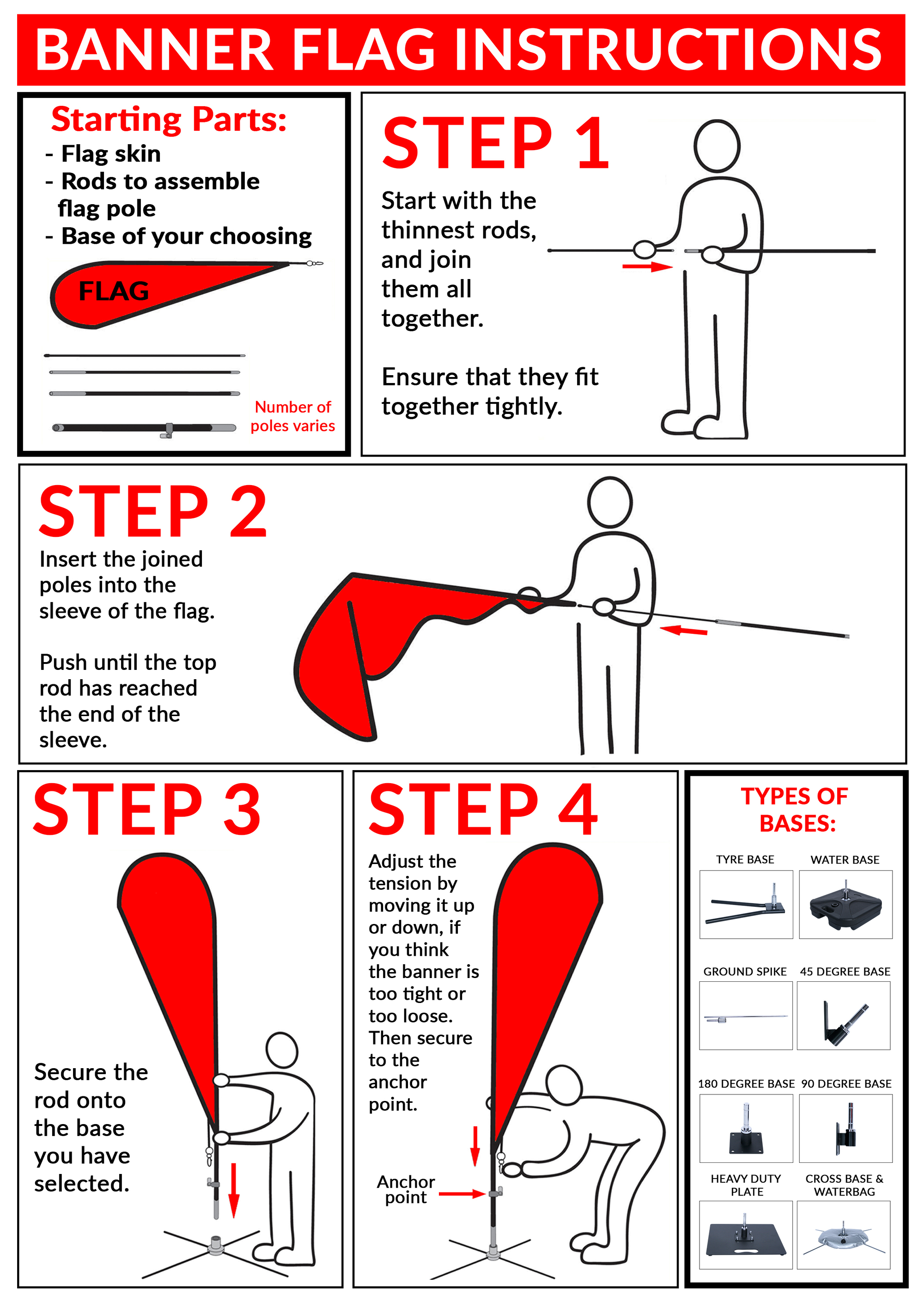 Teardrop Fabric Banner is also called Flying Banner. The Teardrop Fabric Banner comes complete with poles, printed banner, carry bag and a your selected mounting option. This Teardrop Fabric Banner can be produced in both single sided or double sided versions and replacement fabric banners give you the flexibility to change your graphic and message with ease. It is an ideal street banner to be used in moderate winds and weather. Although perfect for outside use, this Teardrop Banner can also be used for an indoor events.