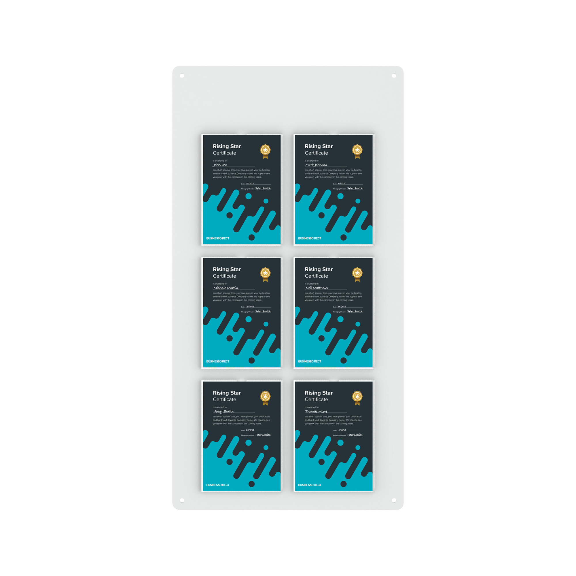 This wall mounting picture board for employees, team photoboards, awards board, rosters, compliance or any information to be displayed. Available in Clear or White Acrylic and a selection of sizes, perfect for reception areas, staff meeting rooms, schools gyms and offices.
