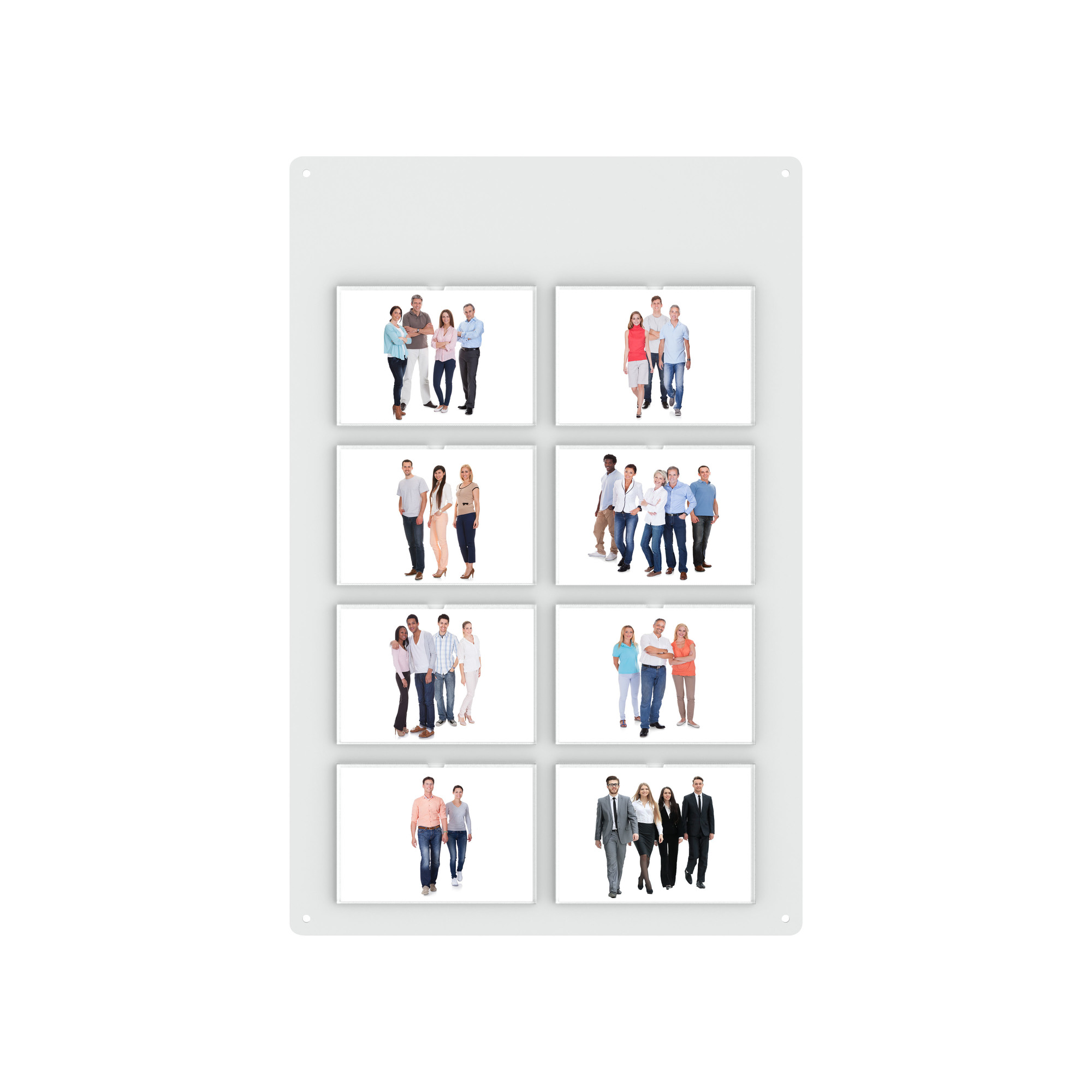 This wall mounting picture board for employees, team photoboards, awards board, rosters, compliance or any information to be displayed. Available in Clear or White Acrylic and a selection of sizes, perfect for reception areas, staff meeting rooms, schools gyms and offices.
