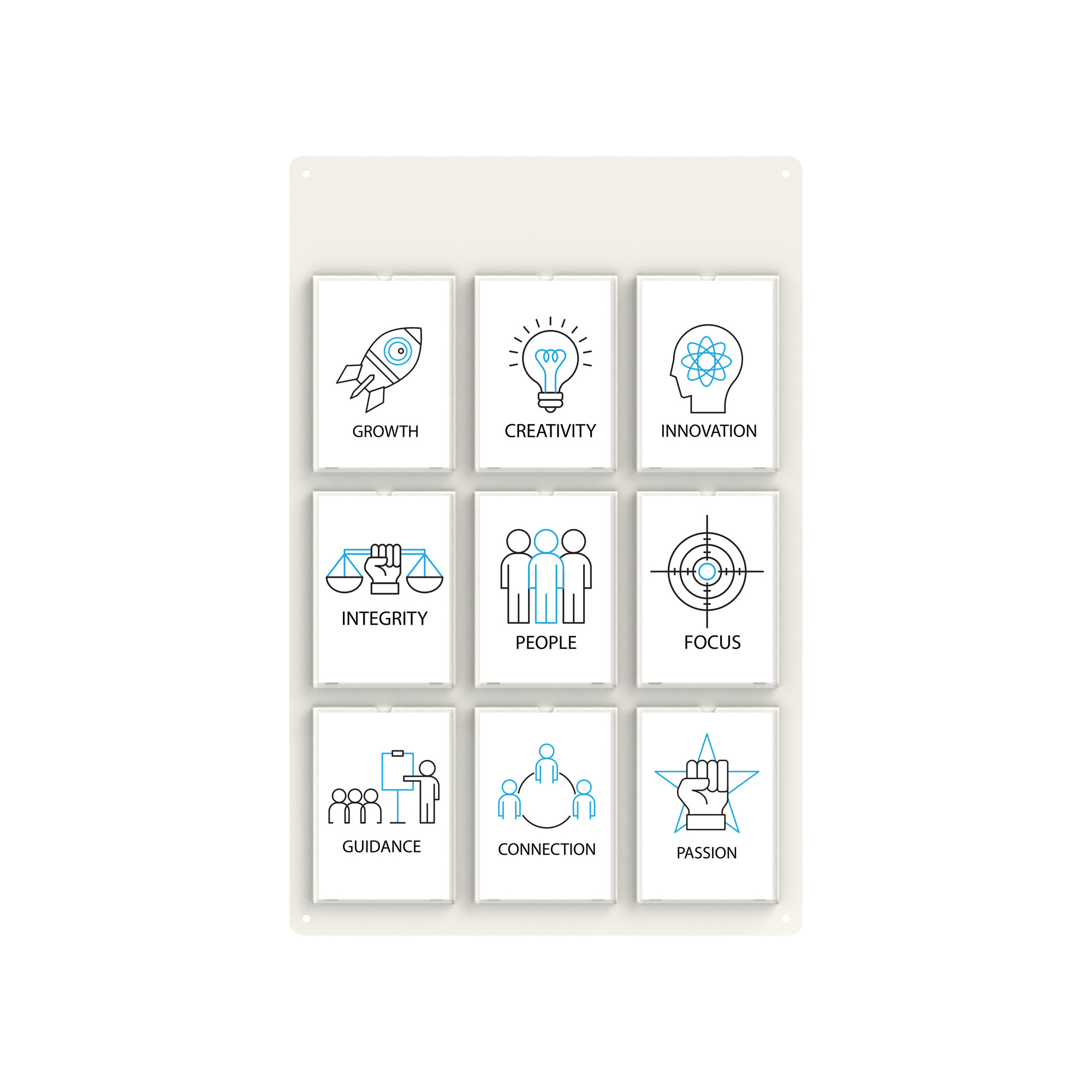 This wall mounting picture board for employees, team photoboards, awards board, rosters, compliance or any information to be displayed. Available in Clear or White Acrylic and a selection of sizes, perfect for reception areas, staff meeting rooms, schools gyms and offices.
