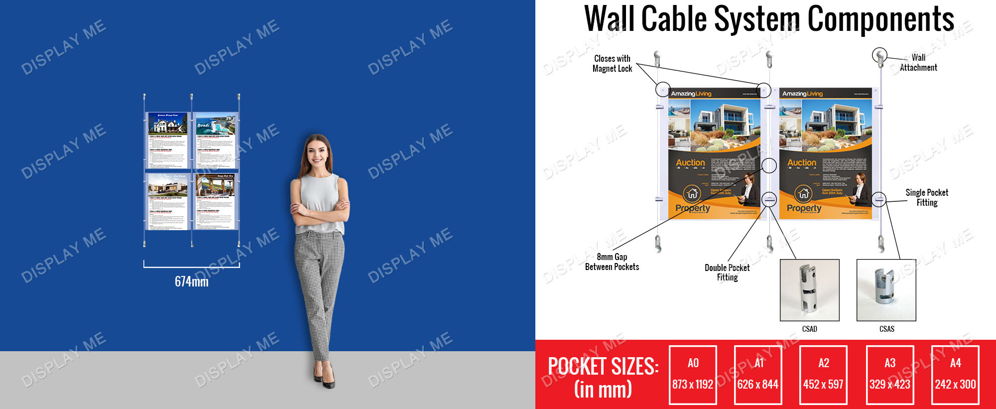 This Wall Acrylic Display cable system is a great way of displaying literature or signs on any wall.