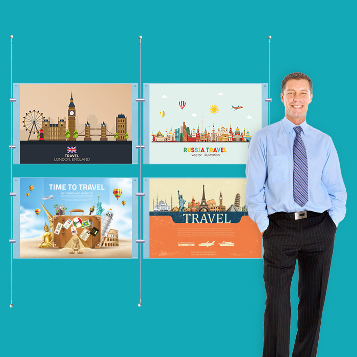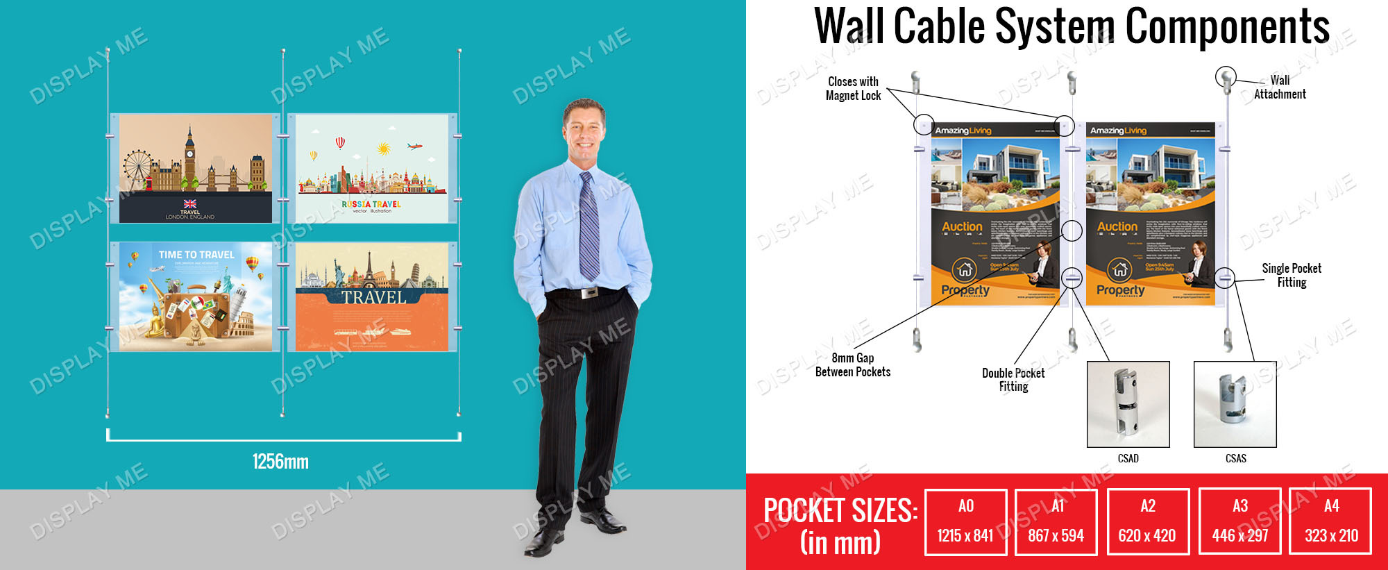 This Wall Acrylic Display cable system is a great way of displaying literature or signs on any wall.