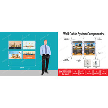 The cable display system also known as wire display or display cable system are cable anchored from wall to wall using a tension adjusted threaded cable. Each steel cable is 4 meters long and can be cut down to size.