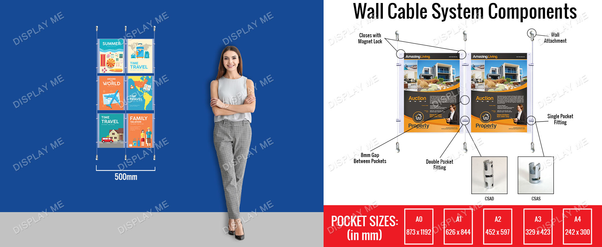 This Wall Acrylic Display cable system is a great way of displaying literature or signs on any wall.