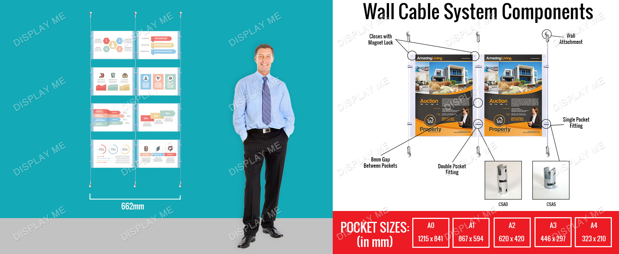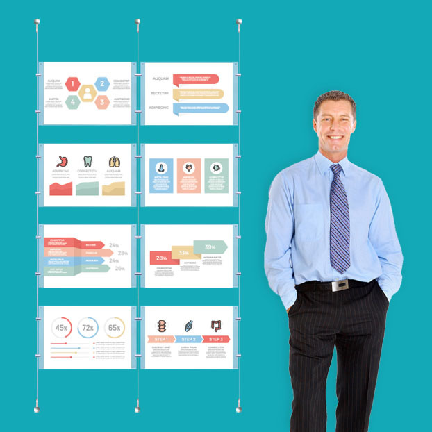 This Wall Acrylic Display cable system is a great way of displaying literature or signs on any wall.