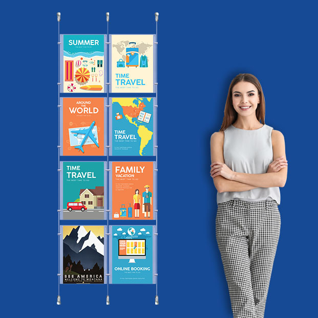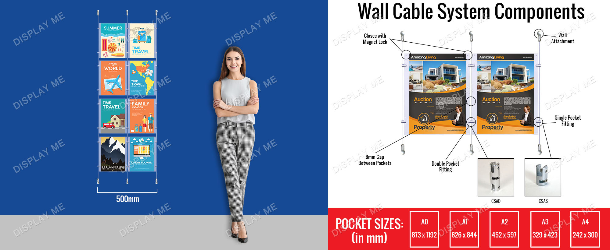This Wall Acrylic Display cable system is a great way of displaying literature or signs on any wall.