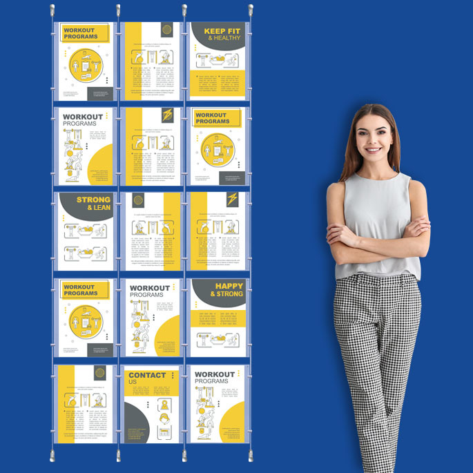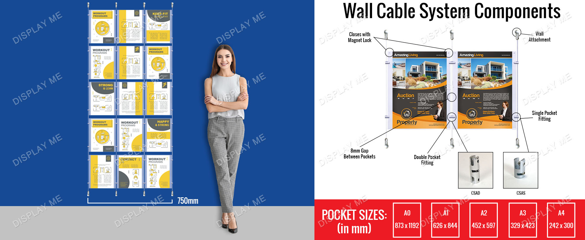 This Wall Acrylic Display cable system is a great way of displaying literature or signs on any wall.