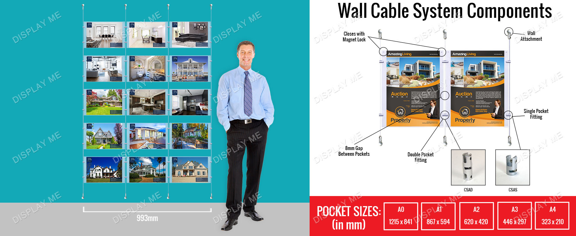 This Wall Acrylic Display cable system is a great way of displaying literature or signs on any wall.