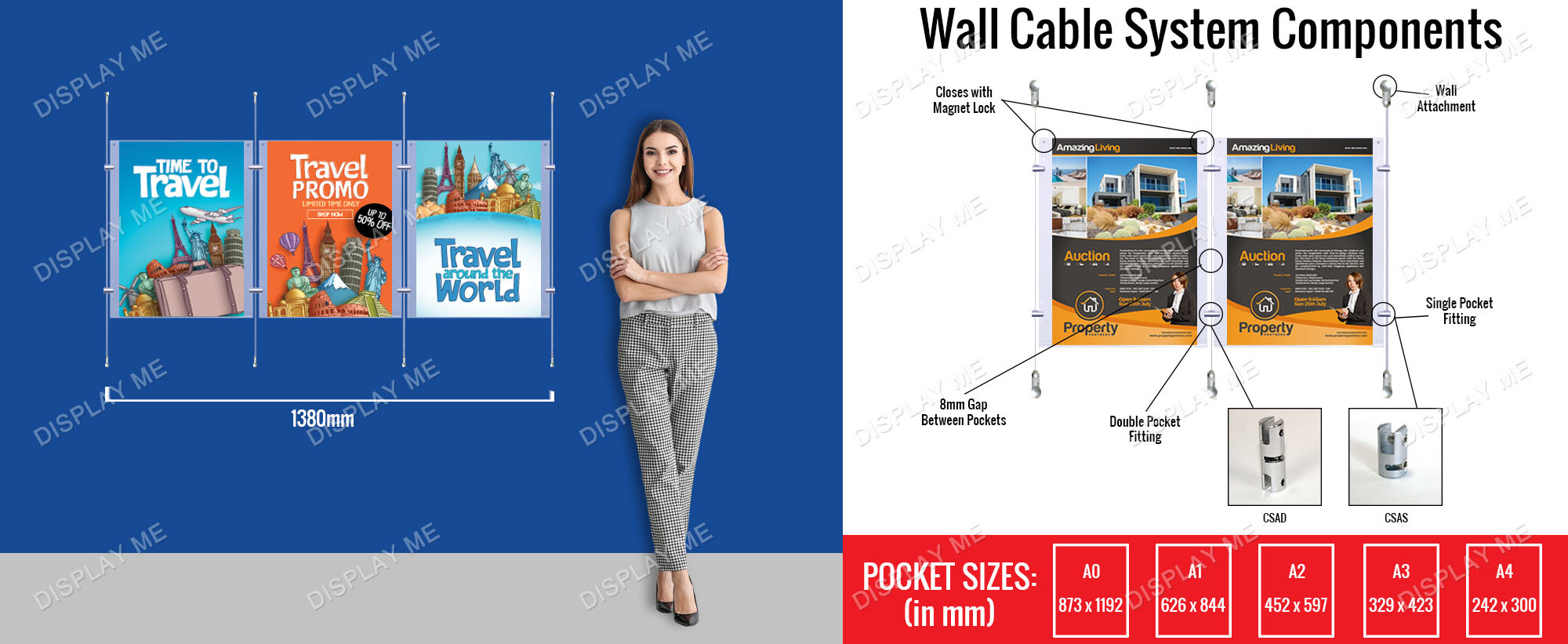 This Wall Acrylic Display cable system is a great way of displaying literature or signs on any wall.